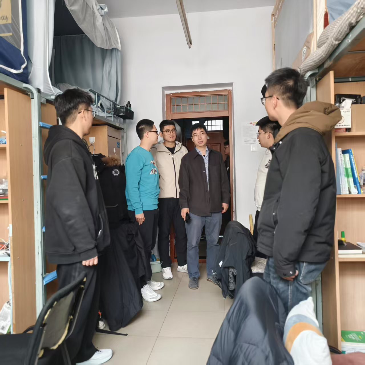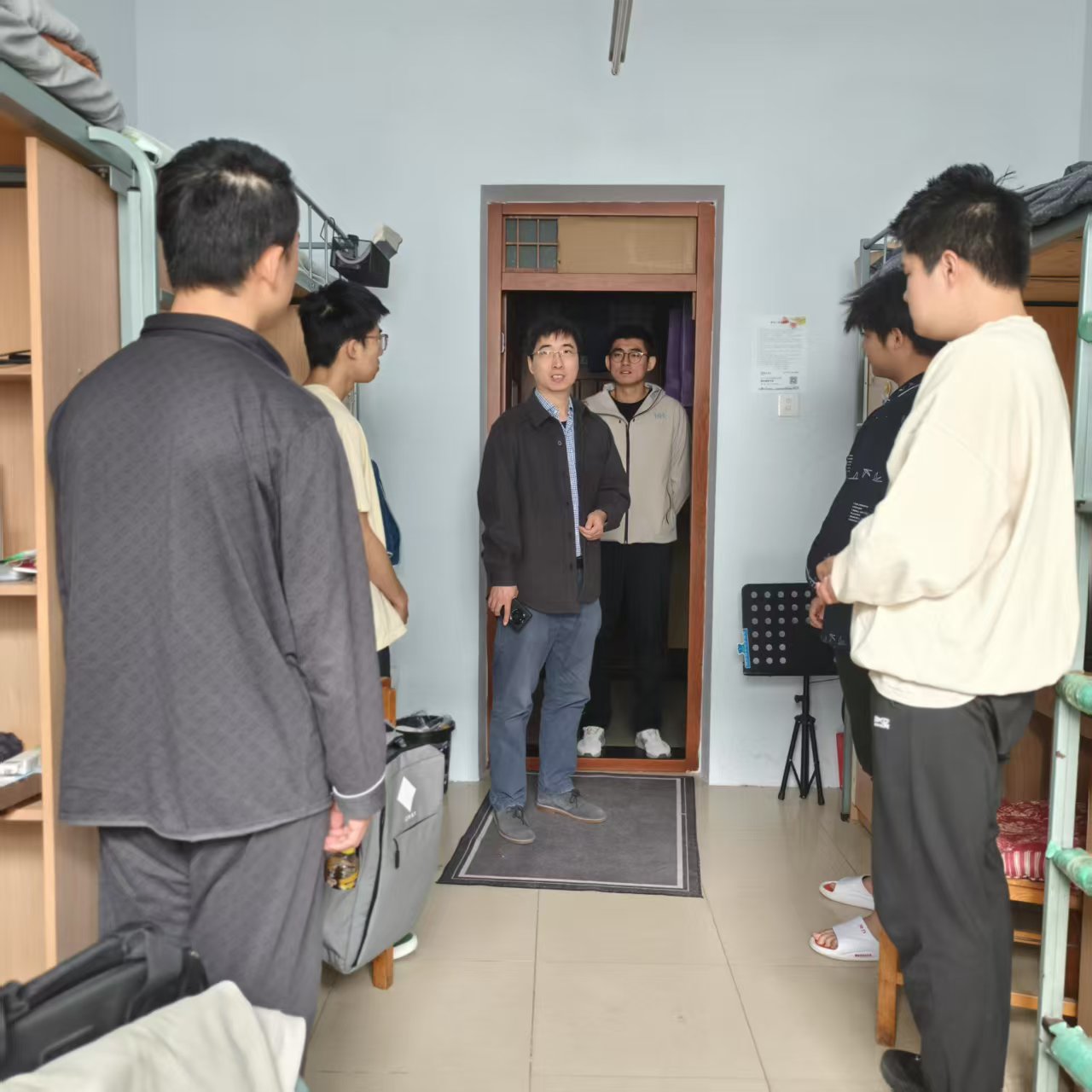 党委副书记兼副院长曲珩与2024级辅导员王文轩深入南苑八公寓,共同走访2024级学生寝室,与同学们亲切交流,了解学习生活情况,传递学院关怀。