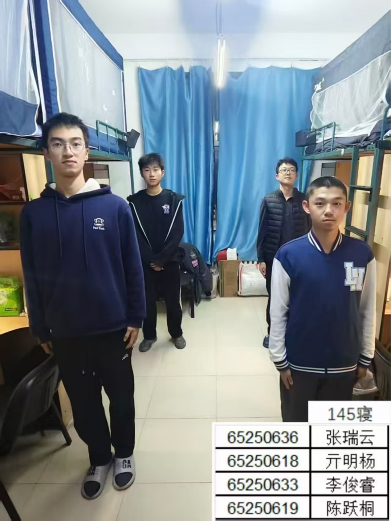 于2025年11月26日针对2025级本科生寝室组织开展了“优秀寝室”评比活动。本次活动由2025级辅导员史博日老师带队,学生会生活部成员参加,对所属年级学生寝室进行了全面深入的走访与检查,并最终评选出8个“优秀寝室”与5名“优秀个人”。