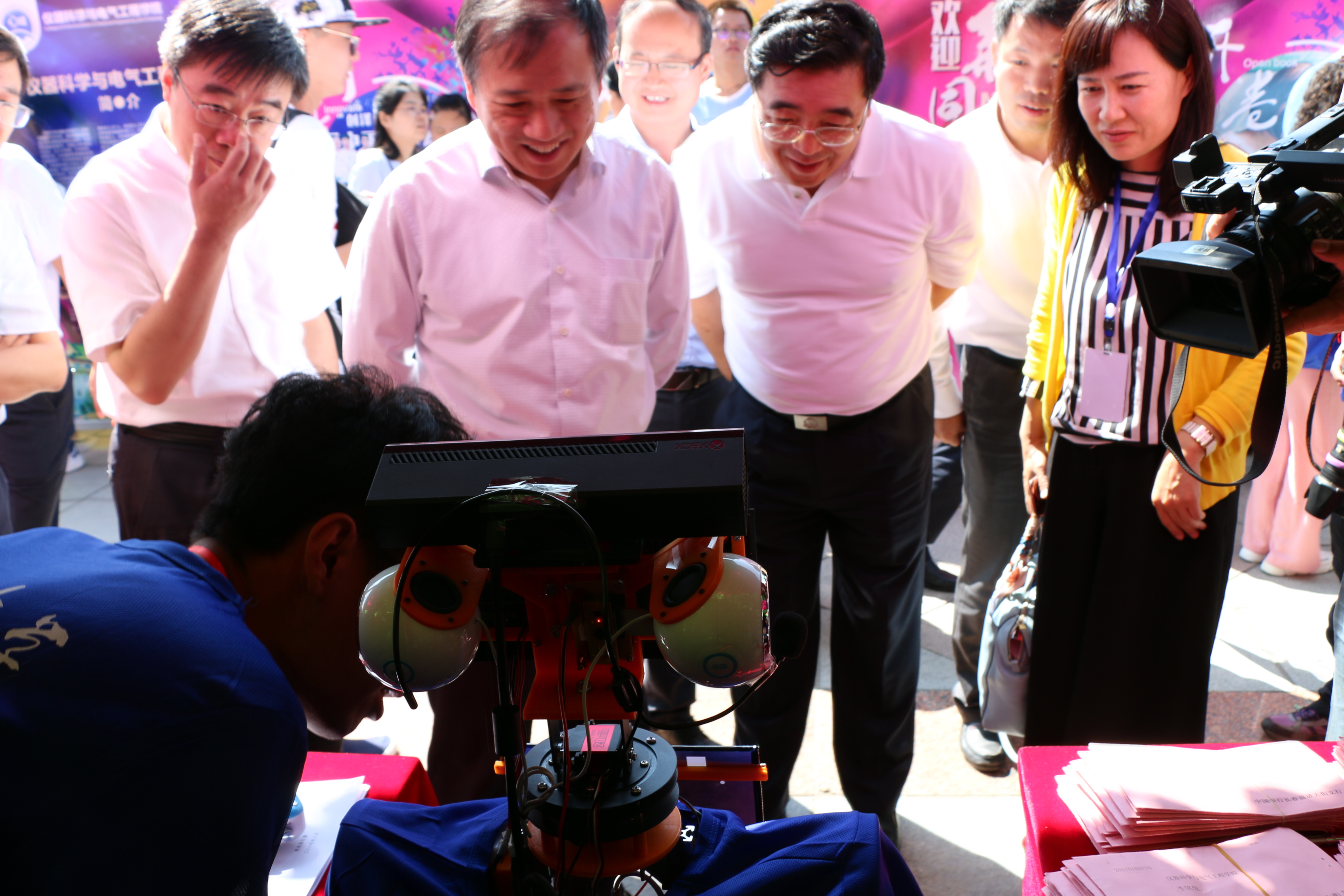 的迎新工作正式开始。在仪电学院的迎新现场出现了一个新面孔——“小七”,它是仪电学院本科生设计开发的语音互动机器人,其在迎新现场的工作是和新生进行语音互动,并提供给新生寝室、学号、班级等基本信息。