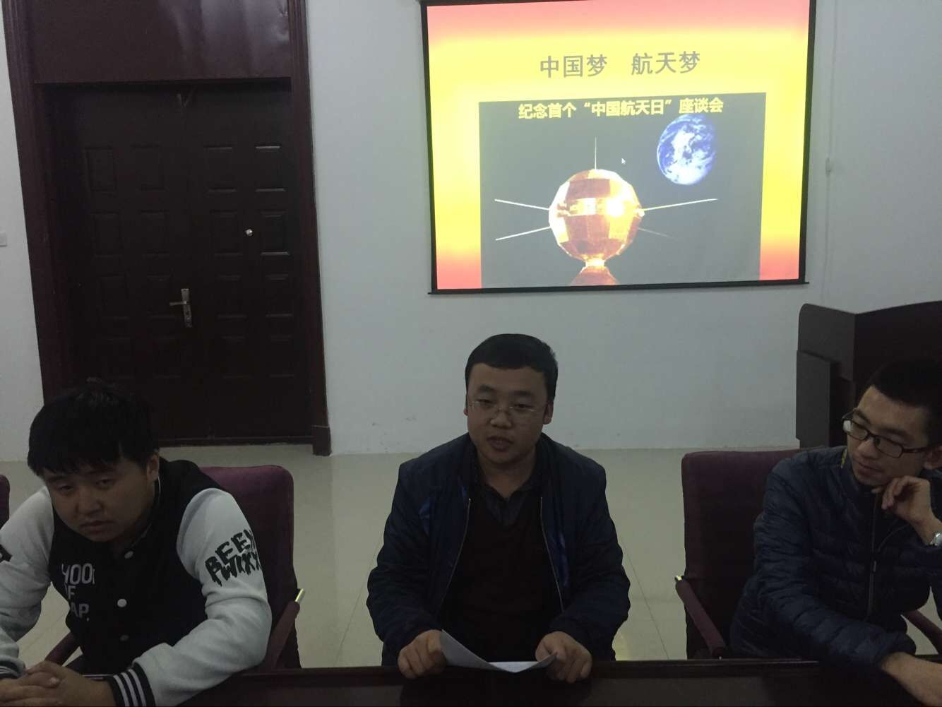 在地质宫214室举行纪念首个“中国航天日”座谈会。会议由学院团委书记兼2015级辅导员张昊宇老师主持,全体团学干部参加。