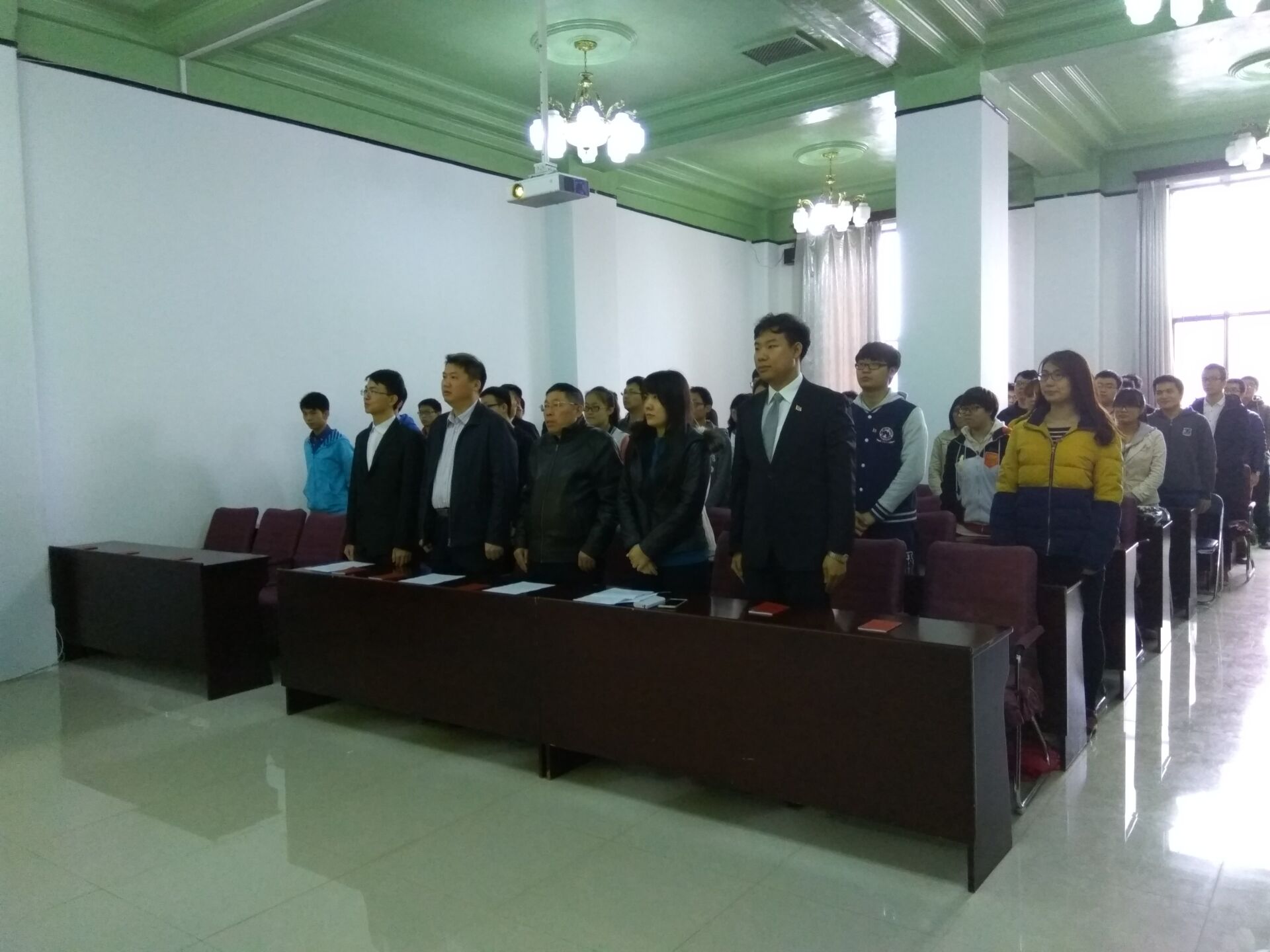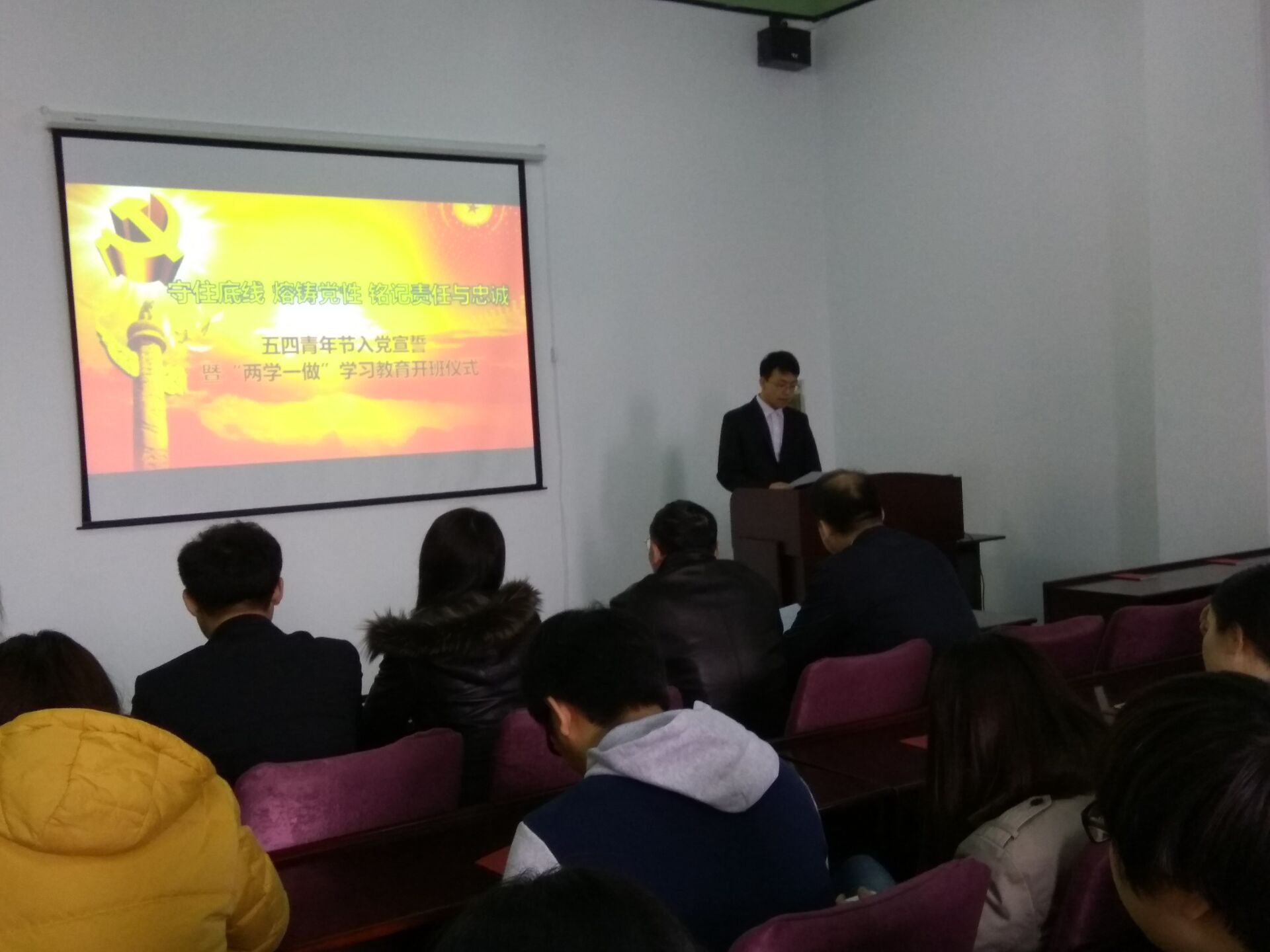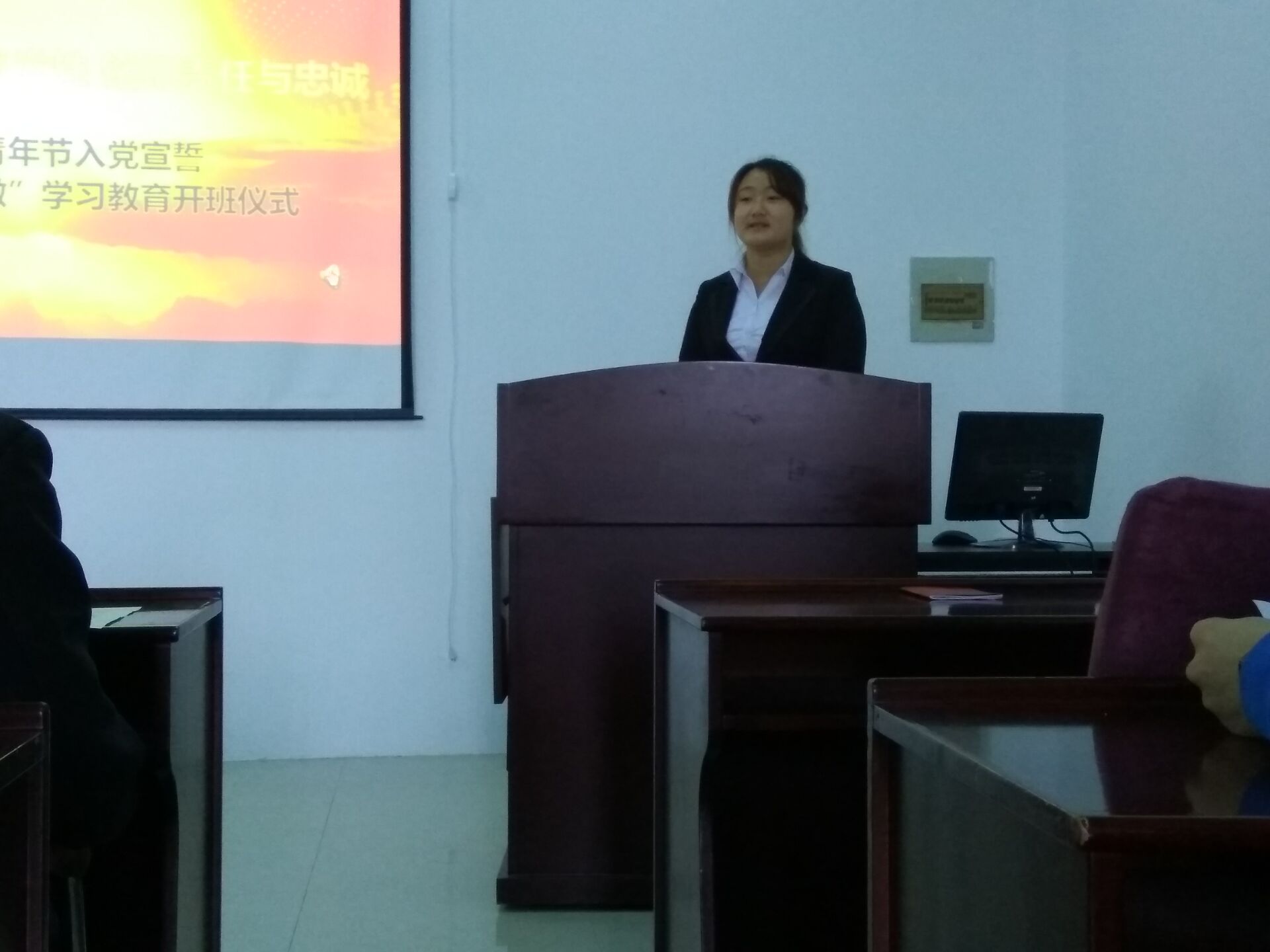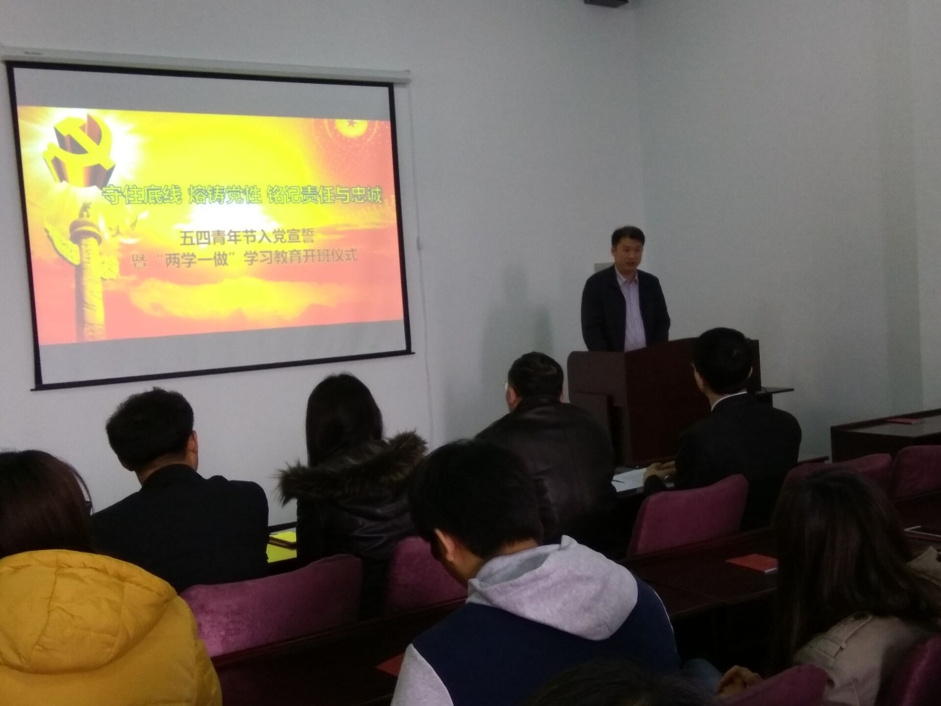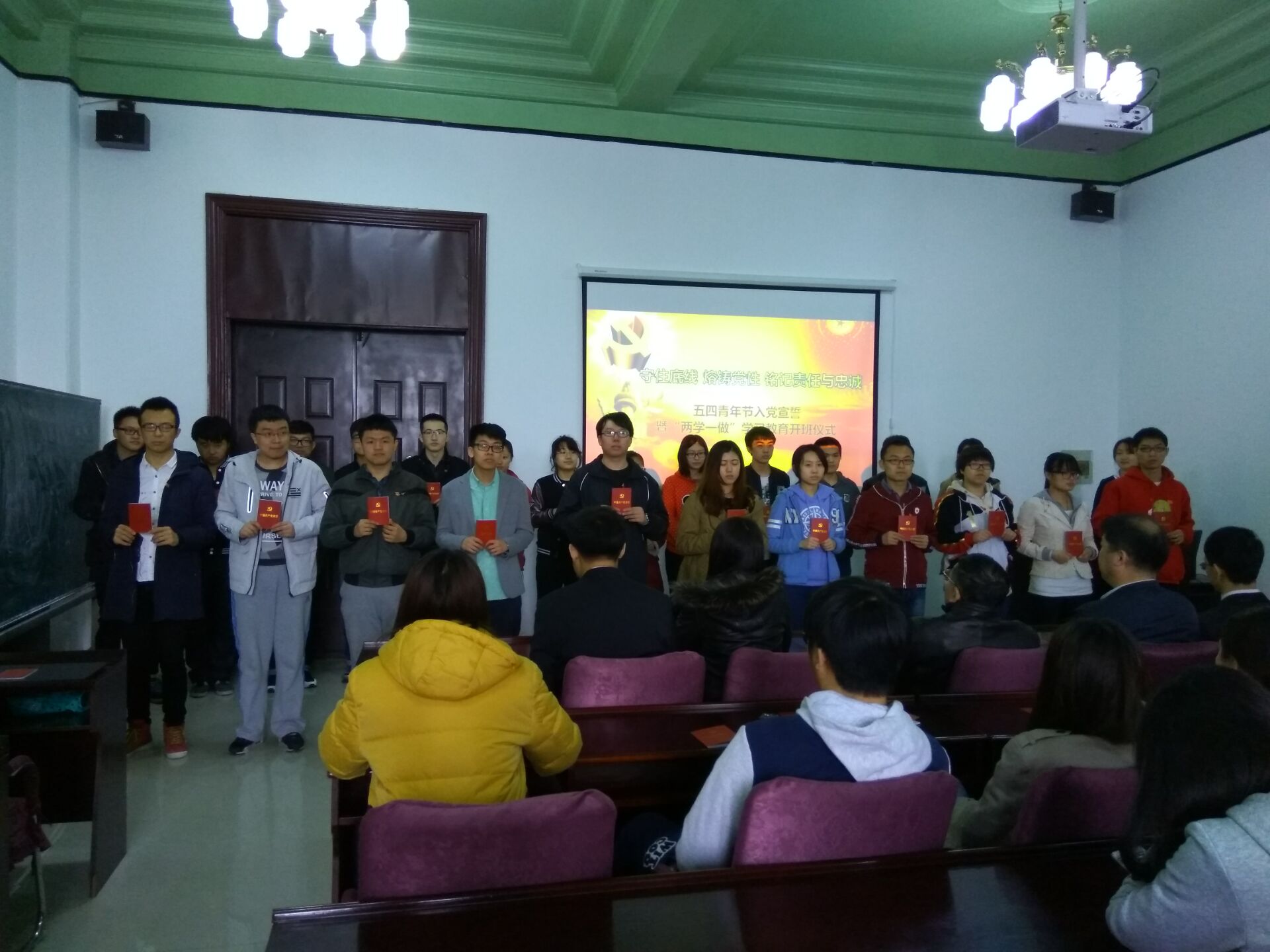 为弘扬五四爱国精神,坚定广大学生党员的理想信念,部署“两学一做”相关工作, onlytik 本科生党支部于2016年5月4日12:30在朝阳校区地质宫208室举行了五四青年入党宣誓暨“两学一做”学习教育开班仪式,学院党委书记余国友教授、党委副书记兼副院长邱增凯老师、学生工作办公室主任王冕老师、本科生党支部全体党员和入党积极分子参加了本次会议。