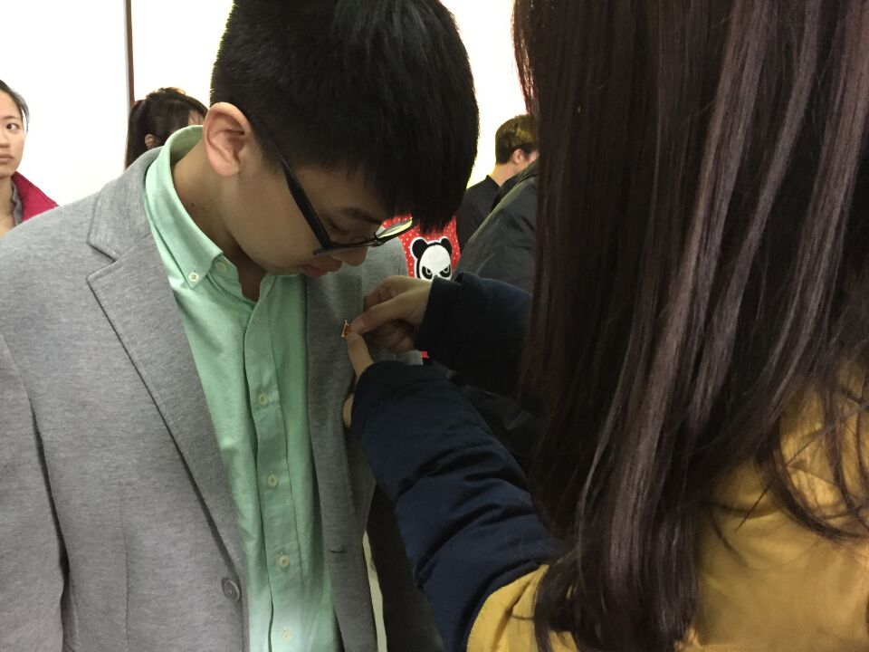 宣誓仪式在雄壮有力的国际歌中拉开序幕。首先,学院学生工作办公室主任王冕老师宣读了24名新发展党员名单。随后,在学生党员李昊阳同志的带领下,新党员集体上前宣誓,他们举起右拳,面对党旗,神情庄重地宣读了誓词,抒发了对党忠诚的决心。宣誓结束后,老党员又一一为新党员佩戴党徽并发放党章,祝贺他们光荣加入中国共产党。随后,预备党员代表赵成同学上前发言,他对党组织的深切关怀及各位党员同志的关心和帮助表示了深深的感谢,并表示将牢记入党誓词,勤奋工作、刻苦学习,时刻以党员标准严格要求自己,做一名合格的共产党员。最后,学院党委副书记兼副院长邱增凯老师讲话,他希望每一个党员终生都以这个神圣的时刻激励自我,践行入党誓言,为党的事业不懈奋斗。希望党员同志们以此次大会为新起点,更加严格要求自己,进一步学习党的基本理论和知识,增强党员的责任意识,在工作中勇挑重担,努力完成自己的本职工作,同时做到以下几点:第一,正确处理好个人利益与集体利益的矛盾,在工作、学习和社会活动中起模范带头作用。第二,按时向党组织汇报思想和工作情况,努力做一名合格的共产党员。与此同时,邱增凯老师也希望全体积极分子坚定信念,求取成绩,创造条件,通过实际行动向党组织靠拢,早日实现自己的人生追求。随后邱老师对学生党支部“两学一做”学习教育活动进行了具体安排部署。