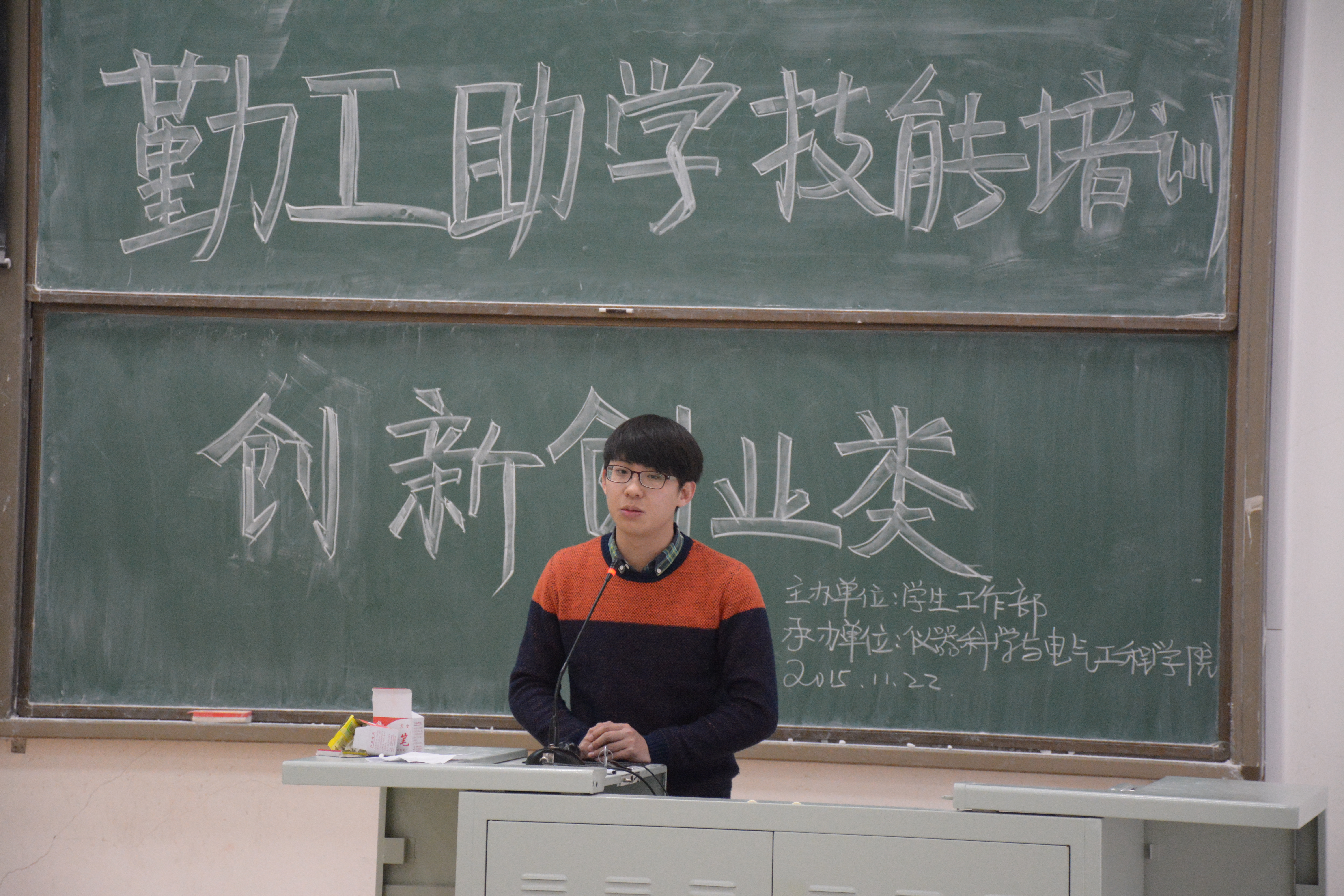 电子科技协会主席穆怀志主持,电子科技协会前主席任同阳主讲,来自中心校区各学院从事勤工助学工作或有勤工助学需求的学生参加了此次讲座。