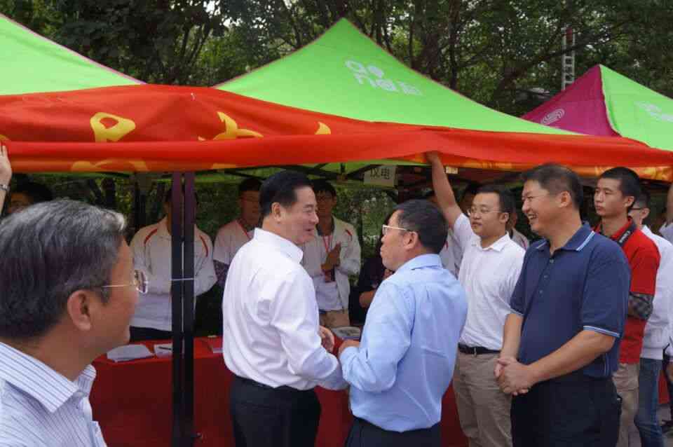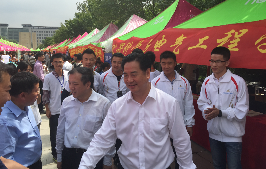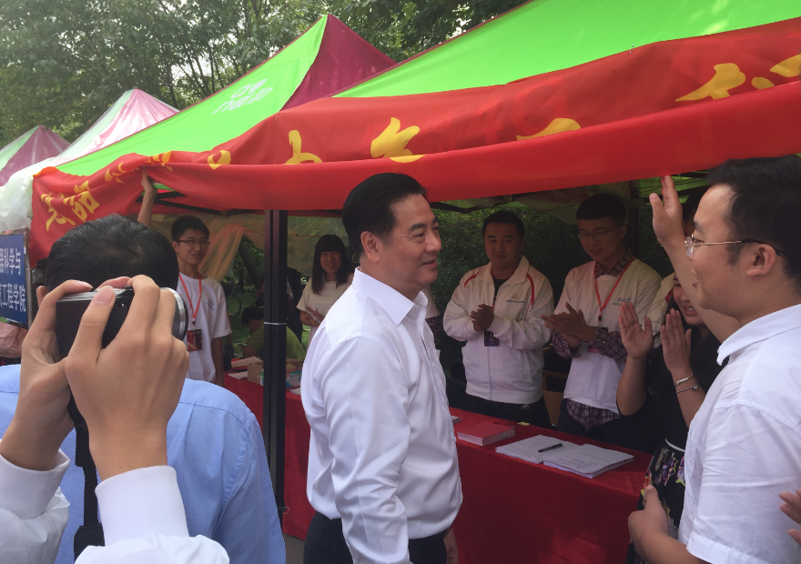 2015年8月29日上午,校长李元元院士、校党委书记杨振斌教授在学校相关职能部门负责领导陪同下来到中心校区五月花广场视察2015年迎新工作情况。