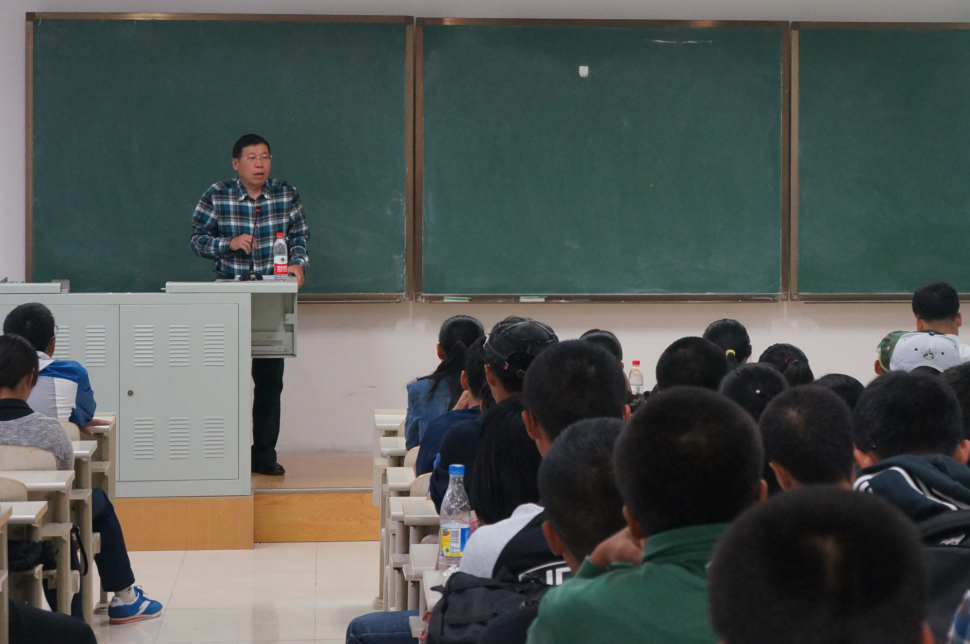 党委书记余国友教授主讲,院学生工作办公室主任兼2014级辅导员王冕老师、2015级新生辅导员张昊宇老师和全体2015级新生参加本次讲座。