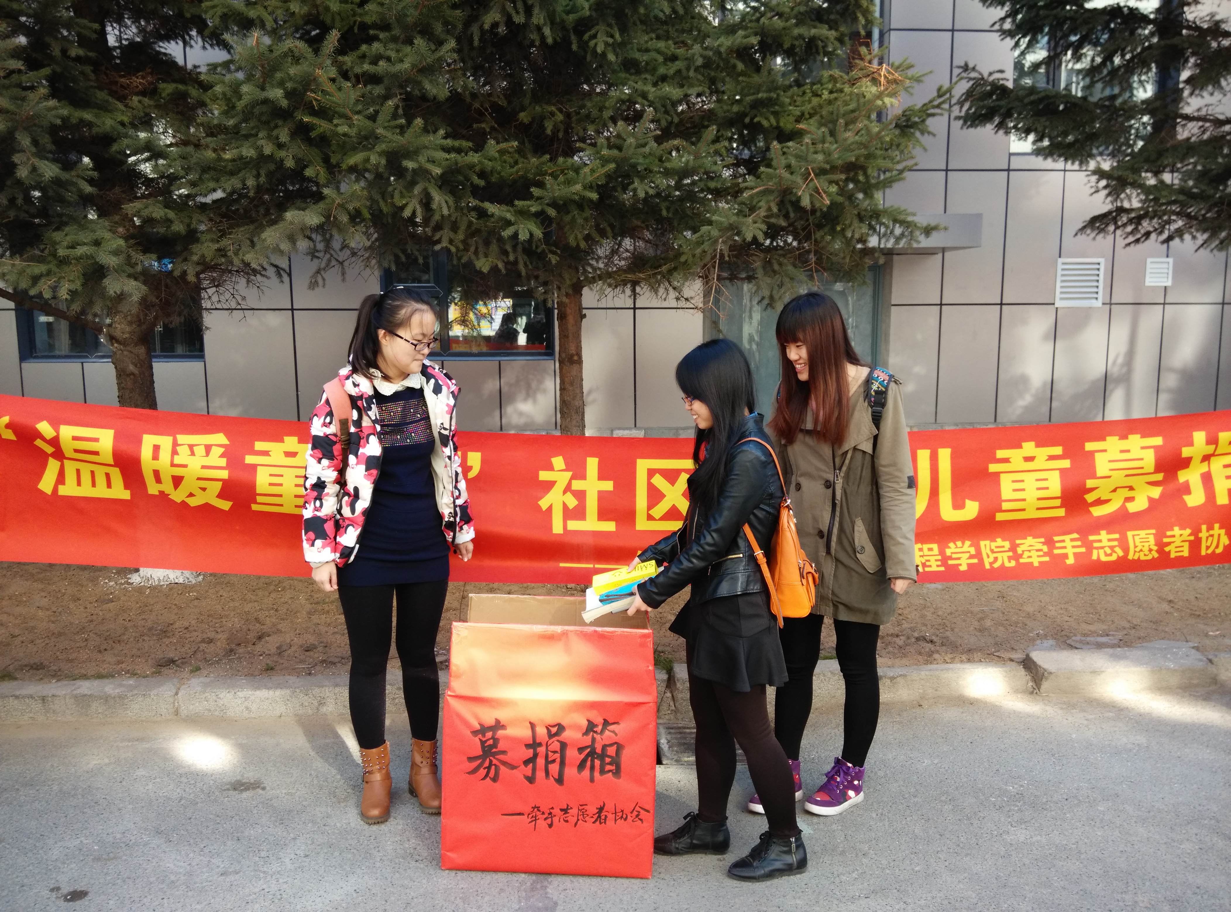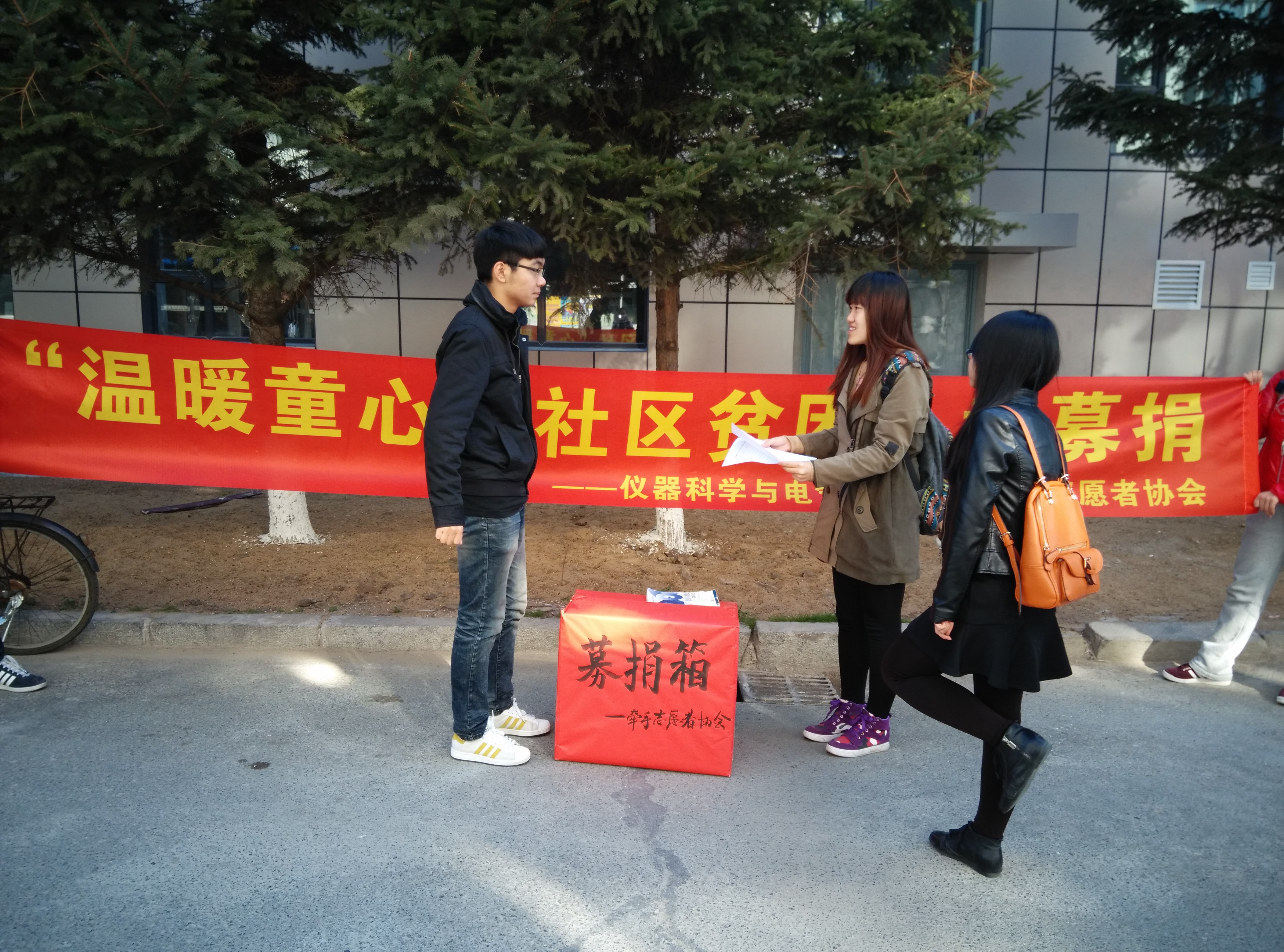 分团委第一副书记付博、“牵手”青年志愿协会会长陈雨薇、副会长周振宇、于晓蔓四人的带领下,志愿者们向在募捐现场驻足的人们讲述贫困儿童困难的生活状况,短时间内就吸引了众多同学的关注,不少热心同学感动不已,纷纷慷慨解囊,为募捐活动献出自己的一份力。短短一上午的时间,募捐箱已经被好心人送来的物品堆满。中午12点,本次募捐活动圆满结束。本次活动的全部募捐物品将由清和街道分发给所辖社区的贫困儿童,以帮助他们的学习和生活。