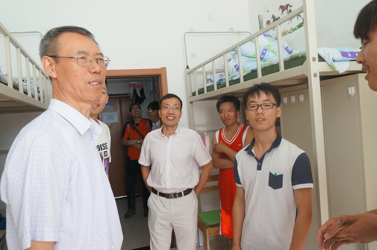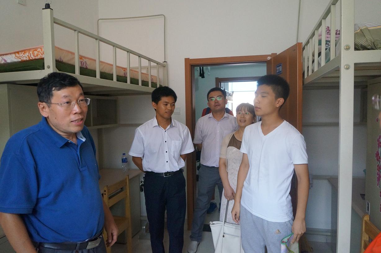 2014级新生,了解2014级新生入校情况。院学生工作办公室主任兼2014级新生辅导员王冕、院团委书记兼2011级辅导员朱宇、2014级各班导师及学院主要学生干部陪同看望。