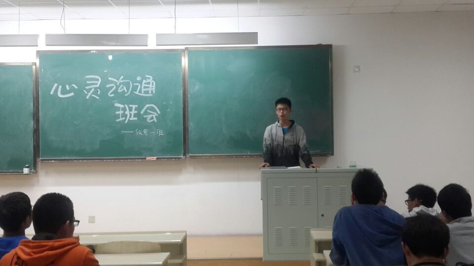 晚上六点,班会准时开始。班级心理委员柴子威同学首先向同学们介绍了本次班会的主题和目的,并对班级现状做陈述,发表自己对于增强班级成员之间心灵沟通的一些看法,提出针对性意见。随后,心理委员把大家提前写好的“心愿卡片”收集起来放到“心愿盒子”里,同学们积极发言,表达自己在进入大学之后的疑惑和对未来的憧憬,也提出了切实有效的加强班级凝聚力,增进班级成员交流的意见。之后的才艺表演活跃了全场气氛,将活动推向了高潮。最后,心理委员对本次班会进行总结,此次班会圆满落下帷幕。