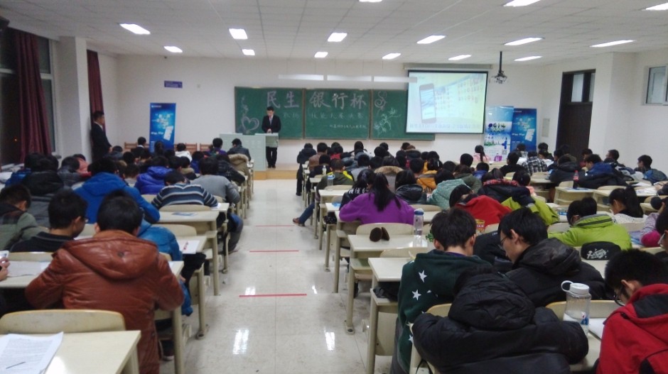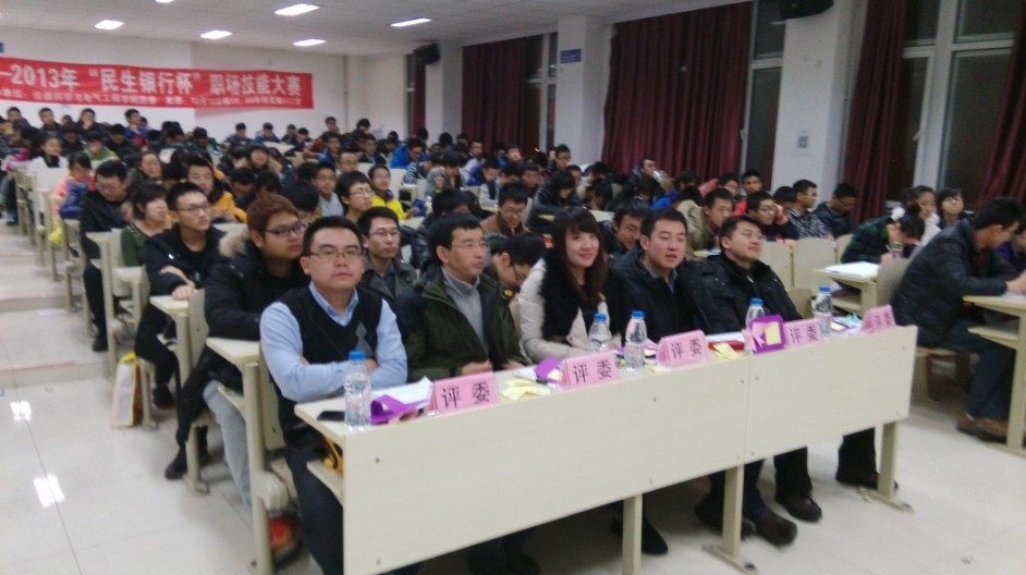 团委、学生会携手民生银行长春支行营业部联合开展了2013年“民生银行杯”职场竞技大赛。经过前期初赛和复赛的激烈角逐,本次大赛的决赛于2013年12月18日晚在中心校区李四光楼304室举行。本次决赛特别邀请了仪电学院学生工作办公室主任王冕老师、校学生工作部姜宇航老师、公共卫生学院团委书记苏国范老师、植物科学学院姜晓春老师、仪电学院团委书记朱宇老师和民生银行长春支行营业部负责人作为评委出席活动,学院分团委、学生会主要学生干部以及2013级全体同学共同参加了此次活动。
