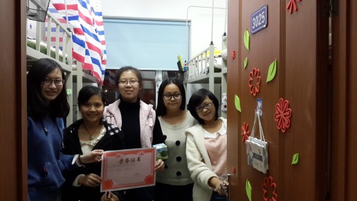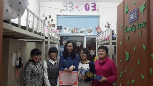 分团委、学生会相关负责人走进同学们的寝室,对在寝室文化节中表现良好的同学进行了表扬,并颁发了精心准备的奖品与奖状。同时,他们也还鼓励那些今年没有获奖的同学不要灰心,在以后的寝室建设活动中还有机会一展寝室风采。获奖的同学纷纷表示以后会再接再厉,积极投身寝室建设活动中去,更加热爱自己的寝室,更加热爱良好的校园环境,并愿意在寝室文明建设上积极起模范带头作用。同学们还说通过此次寝室文化节不仅增强了寝室同学们之间的友谊,而且使自己更加清楚自己的梦想,每当看到寝室墙上装扮的画,还有自己写在书桌前的话就觉得有人告诉自己不要忘了最初的梦想。活动最后,各个获奖寝室和同学一起合影留念。