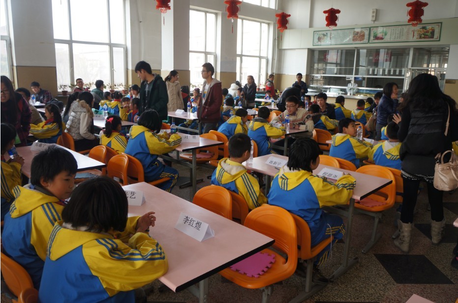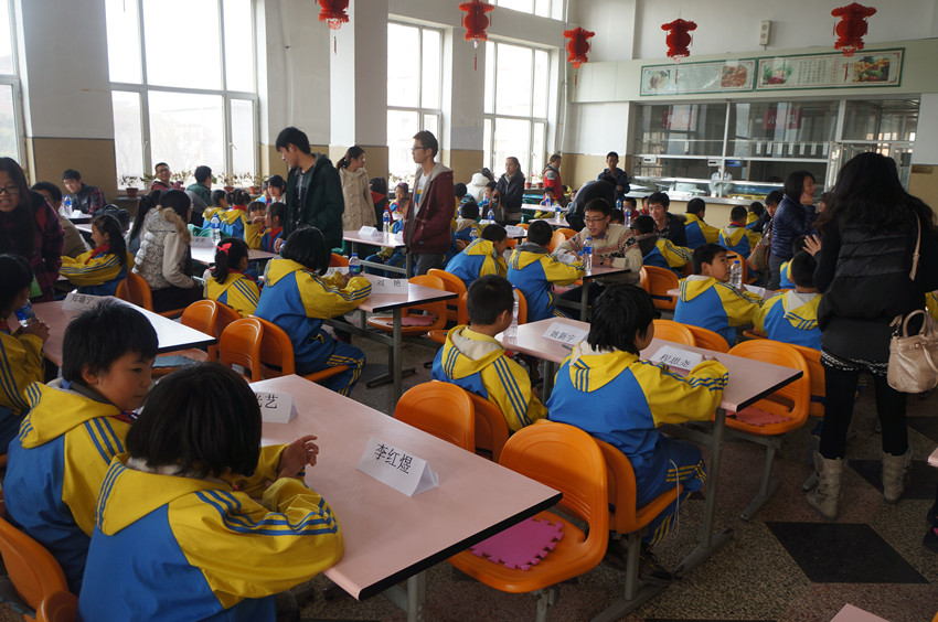 团委志愿服务部和“牵手”青年志愿者协会便在朝阳校区开展了“爱心一对一,请客吃午餐”爱心午餐招募活动,为64名农民工子女分别找到了负责爱心午餐的志愿者。11月2日中午11:20,志愿者们准时来到朝阳校区食堂,在写着对应农民工子女名字的座位上等待,11:30,64名农民工子女秩序井然地排队走进食堂,孩子们很快便在桌子上找到了自己的名字,大学生志愿者们热情地带领各自负责的小朋友到食堂窗口排队打饭,哥哥姐姐们热情大方,孩子们礼貌有加。可口的饭菜和温馨的关怀让小学生们感受到了如家的温暖。饭后,大家纷纷将餐具送到回收处,然后回到座位聊天谈心,在聊天中志愿者们了解到,许多孩子来自于祖国的四面八方,他们的父母为我们城市的建设挥洒着辛勤的汗水,更为我们祖国的发展贡献着坚实的力量;志愿者们纷纷鼓励孩子们要勤奋学习,积极向上,为实现自己的人生理想和伟大的“中国梦”而不懈奋斗。