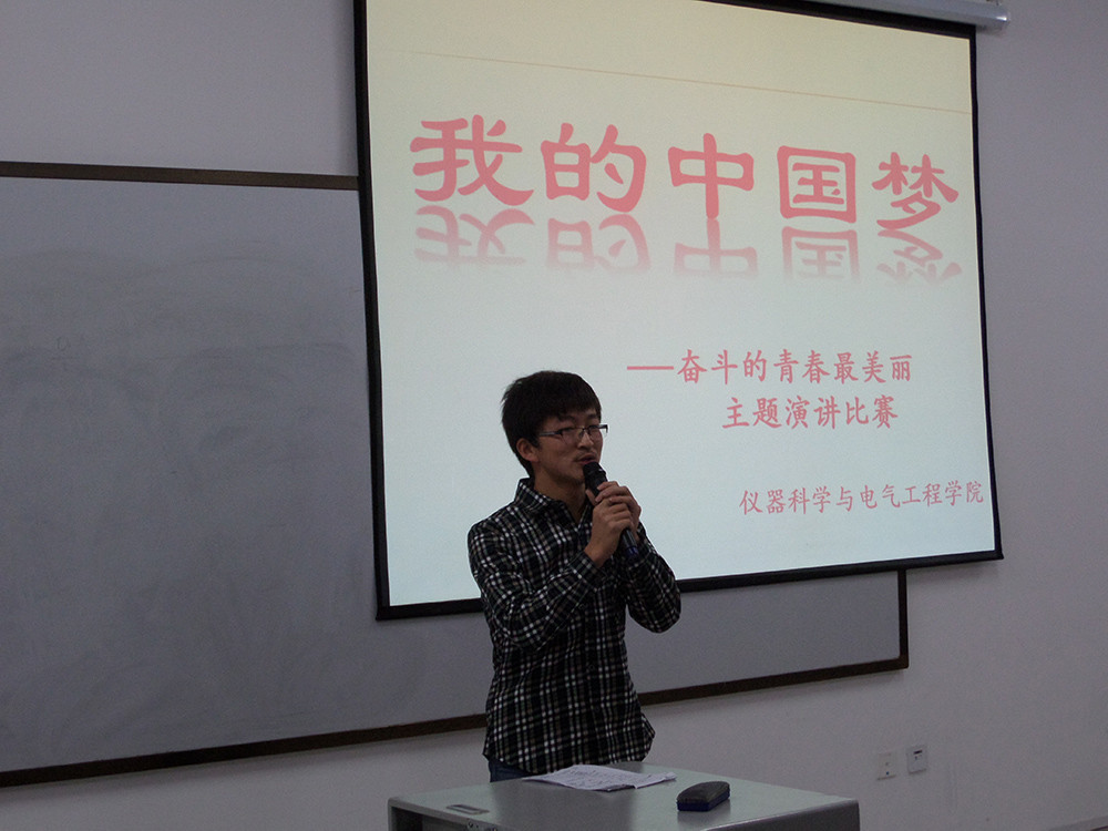 活动于18:00准时开始,此次演讲比赛以一曲激昂的青春励志歌曲拉开序幕,在主持人激昂的介绍中,学院2012级12名优秀学生代表依次登台进行精彩的演讲。周晖同学恰当地引用了“士不可以不弘毅,任重而道远”阐述了个人理想与中国梦之间的关系,并号召大家要通过自身的努力奋斗来不断实现理想;刘帅男同学用诙谐幽默的语言讲述了自己“学习娱乐不分家”的故事,告诉大家在享受大学生活的同时,要记住学习是生活重要的一部分,永远不要忘记学习;宋继斌同学用严谨而富有条理的语言分析了目标与追求的辩证关系,并寄希望于所有同学,希望大家不断调整自己的目标,做一个积极追求的人……接着,各位评委对12位选手进行公正的打分评比。最后,蔡印老师对这次演讲比赛进行了总结点评,他强调:学习如果讲究方法,也许就会起到事半功倍的效果,并勉励大家要努力学习,珍惜时间,为实现自己的“大学梦”和伟大的“中国梦”而努力奋斗