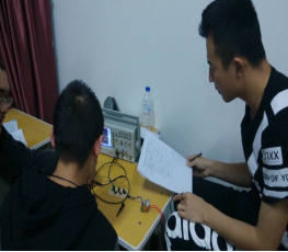 近十天的努力后,很多同学都实现了作品“红外呼吸报警灯”的大部分功能并进行了实际的演示:红外感应模块作为系统开关,LED灯的闪烁与呼吸、闪烁频率可以调节,并且能够轻松地描述出系统的工作原理。还有一部分同学的作品没有达到预期的目标,存在各种各样的问题:不了解具体元件如电磁继电器,LM358等的工作原理,电路板布局不合理,焊点存在虚焊过焊。测试组成员一边对作品进行测试,一边使用数字示波器给所有参赛者观察工作波形,讲解作品的工作原理,传授自己的经验。