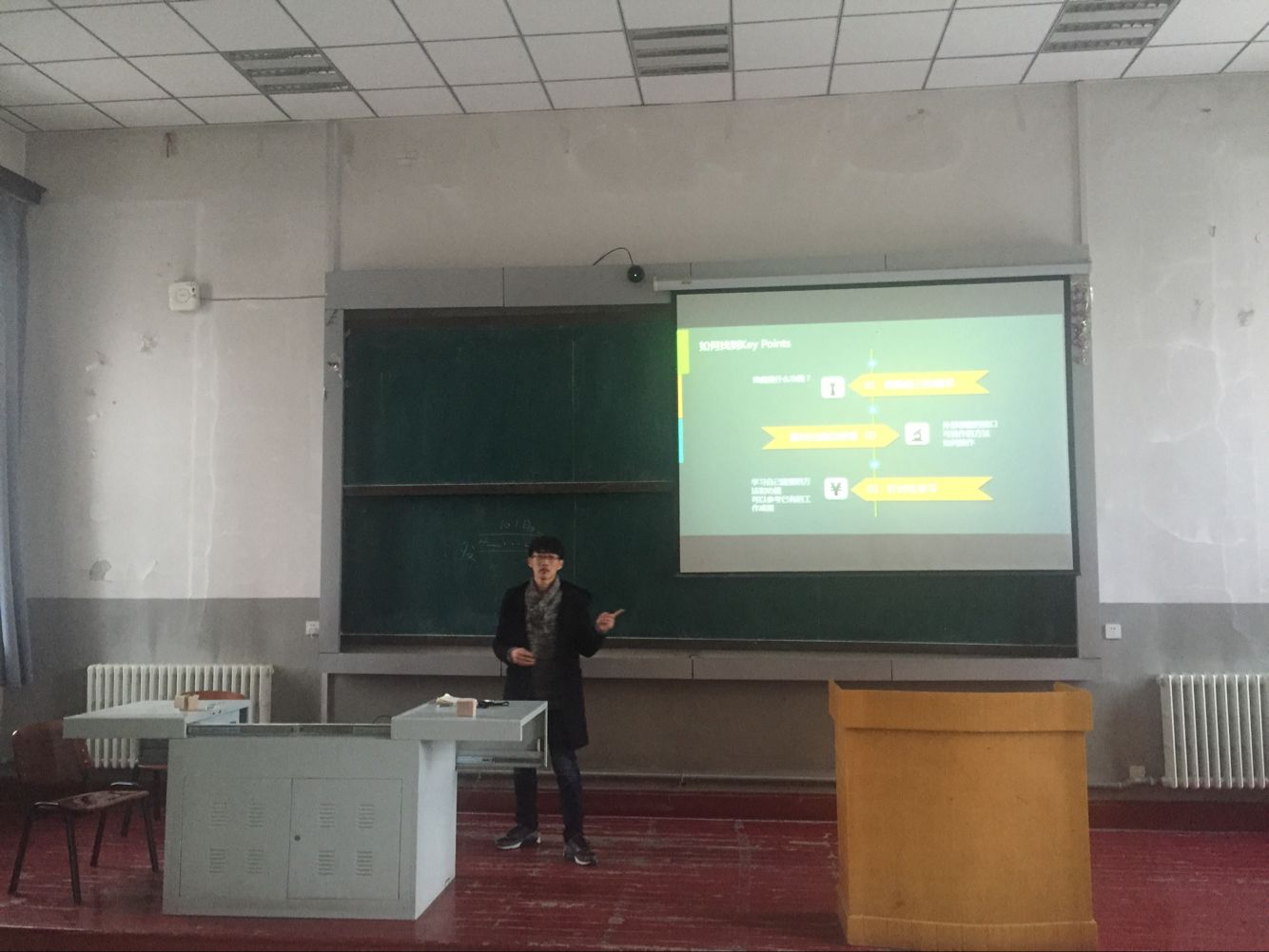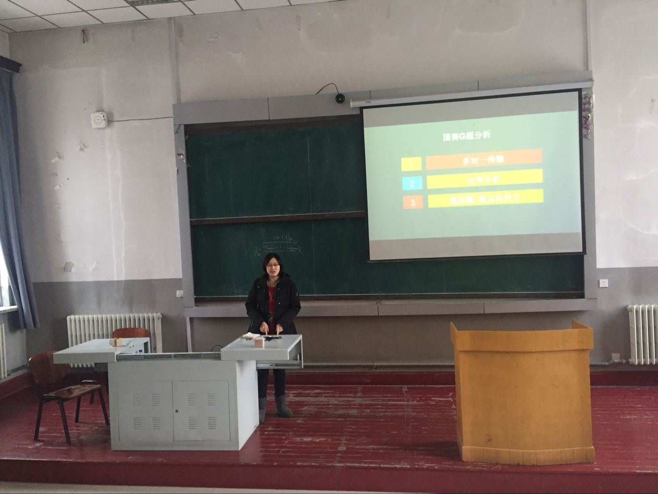 首先由左濂锐学长进行报告,报告题目是《2015年国赛G题—短距视频信号无线通信网络》。主讲人用提问的方式逐步介绍他们所完成的国赛题的内容,方式新颖而且引人入胜,赢得在场观众的阵阵掌声。接下来,第三组组长蔡姗姗学姐向在场的观众讲解了他们组作品的基本原理,并配上精美的小视频作为解说,生动而且形象。之后,王政学长向在场的观众介绍了他们组的软件方案,同时和在场的各位分享了他编写程序的经验。三位还就比赛中的心得体会与在场的同学进行分享。最后进行提问环节,李老师加入其中为观众解答疑惑。本次沙龙就在这一问一答中圆满结束。