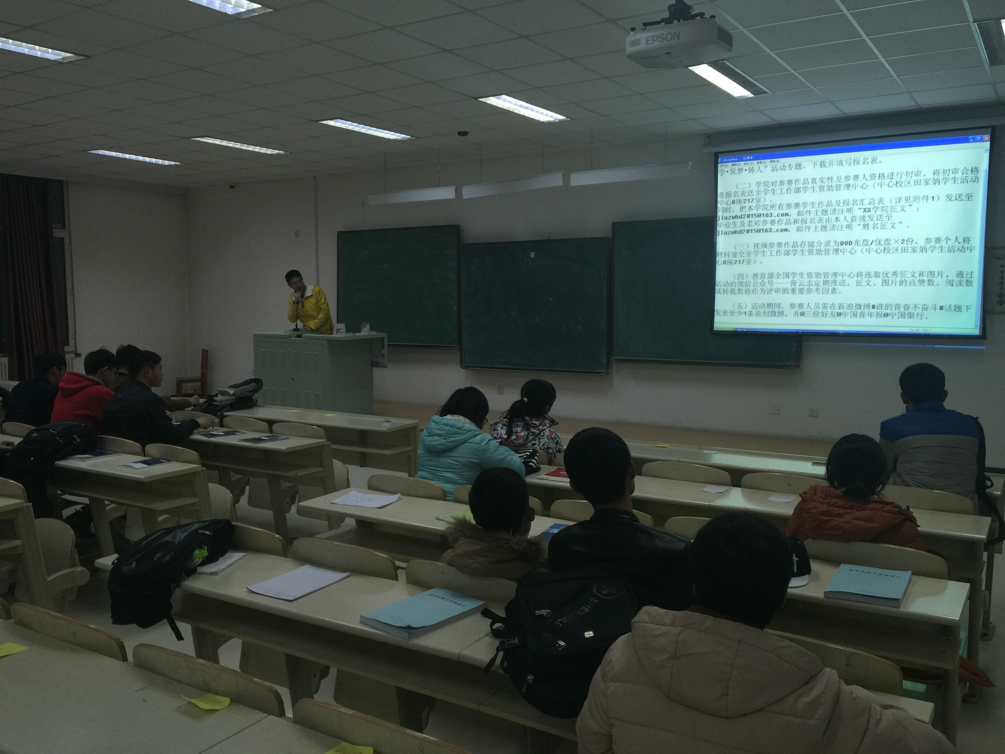 于中心校区李四光教学楼302教室举行“助学•筑梦•铸人”主题征文系列活动动员会。会议由学生会资助管理部兼文艺部部长周琪主持。