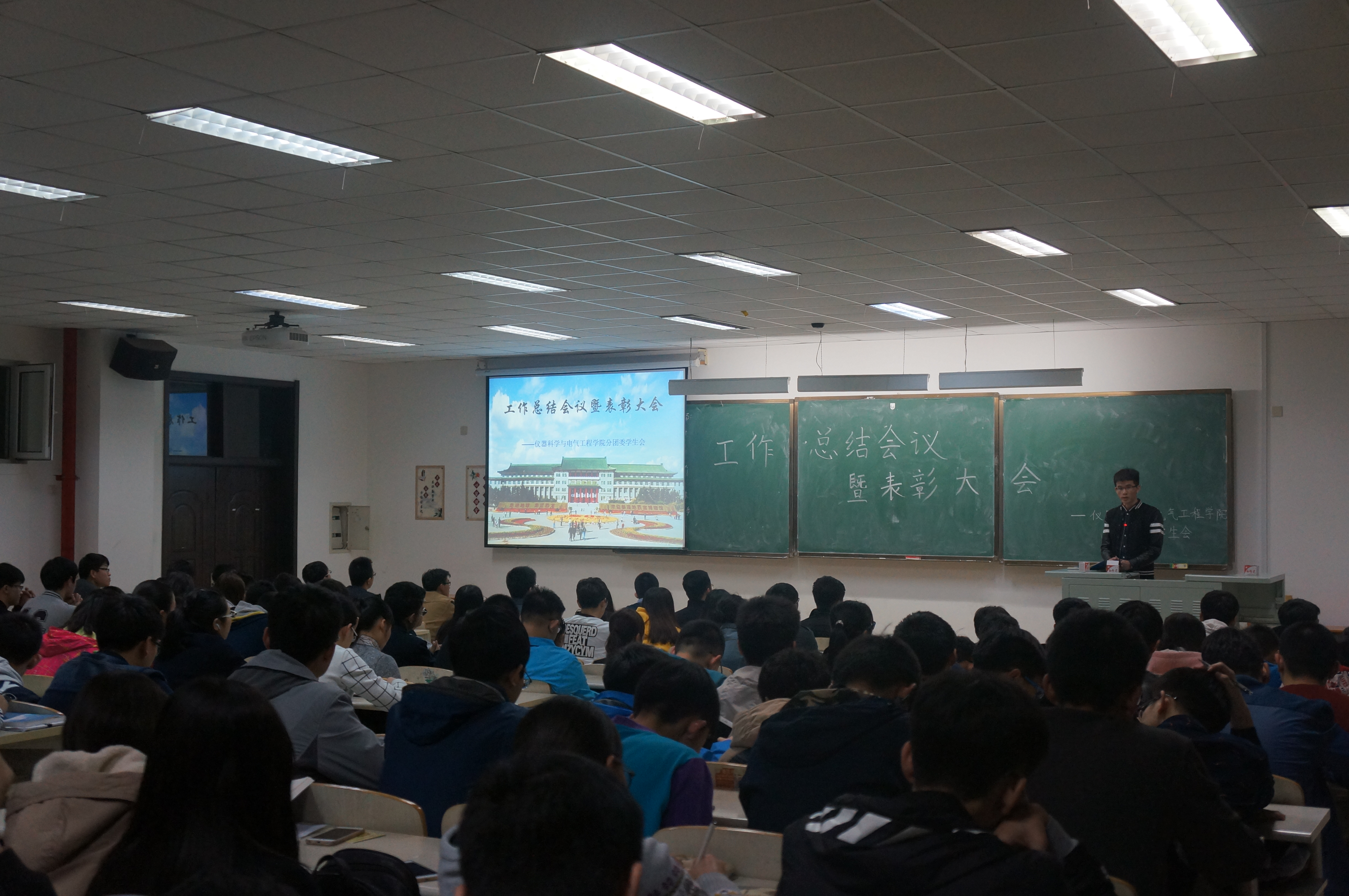 会议开始,学生会主席岳良广首先对学生会上一学期的各项工作进行总结,表达了对上学期工作的肯定,对一直辛勤付出的学生会成员表示衷心的感谢,以及对学生会未来工作发展的憧憬与希冀。接下来由学习部部长赵成公布为“校庆七十周年”献礼计划, onlytik