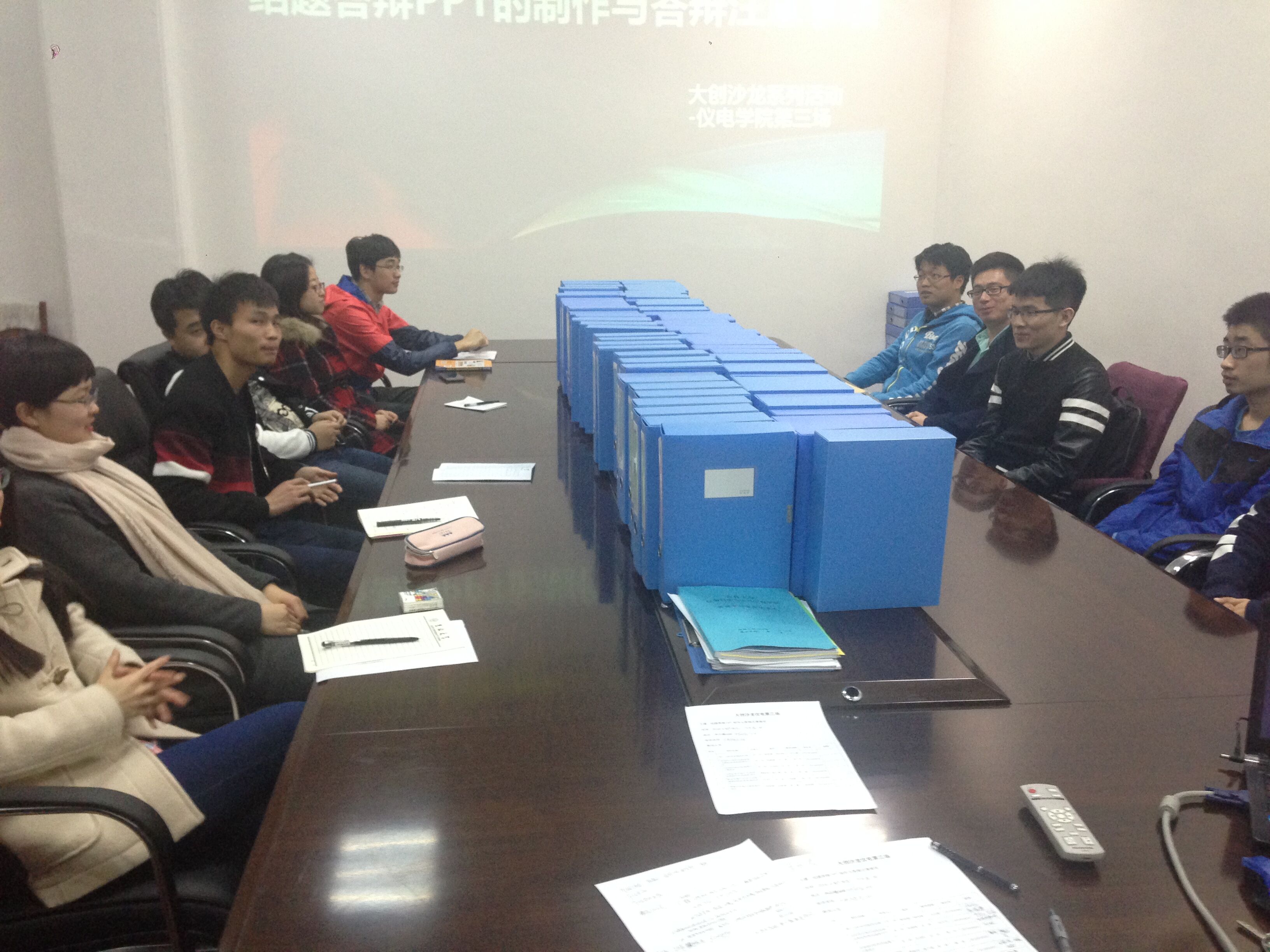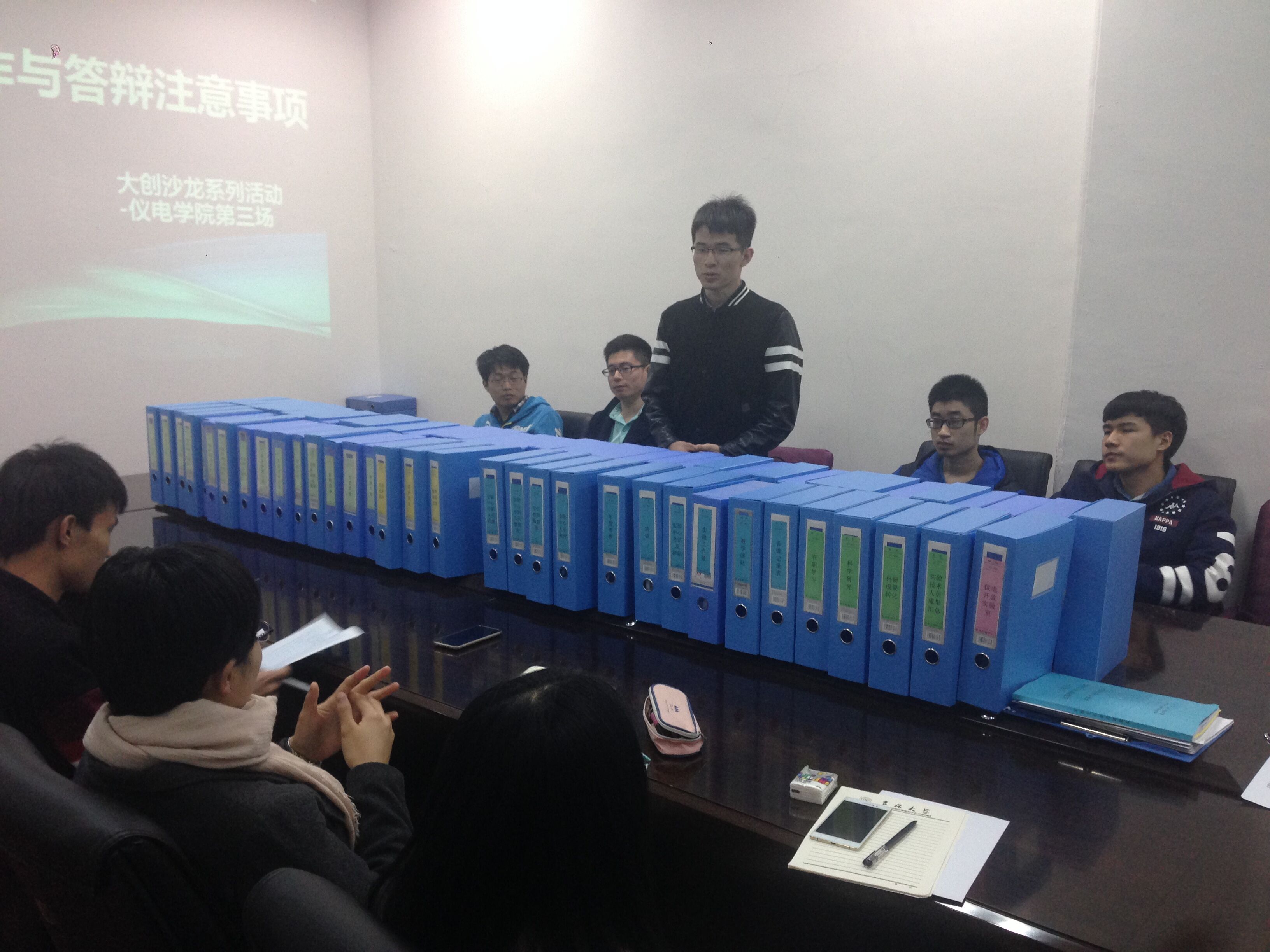 活动开始,主持人向6个项目组传达了活动精神,并希望同学能够认真对待。首先,各项目组依次介绍项目进展情况和主要问题,并向千承辉老师就结题PPT制作与答辩的注意事项进行提问,老师一一回答所有项目组遇到的专业性问题以及PPT制作和答辩上的问题。随后千老师结合前几届优秀学长的PPT向大家补充了一些同学们容易忽视的问题,一个完整的PPT要包括项目背景,研究内容,项目特色,项目创新点、难点,成果介绍,技术指标,而且不要照着PPT读,PPT要避免大篇幅文字的出现;答辩时要正装出席。18:10本次活动在激烈的讨论声中圆满结束。