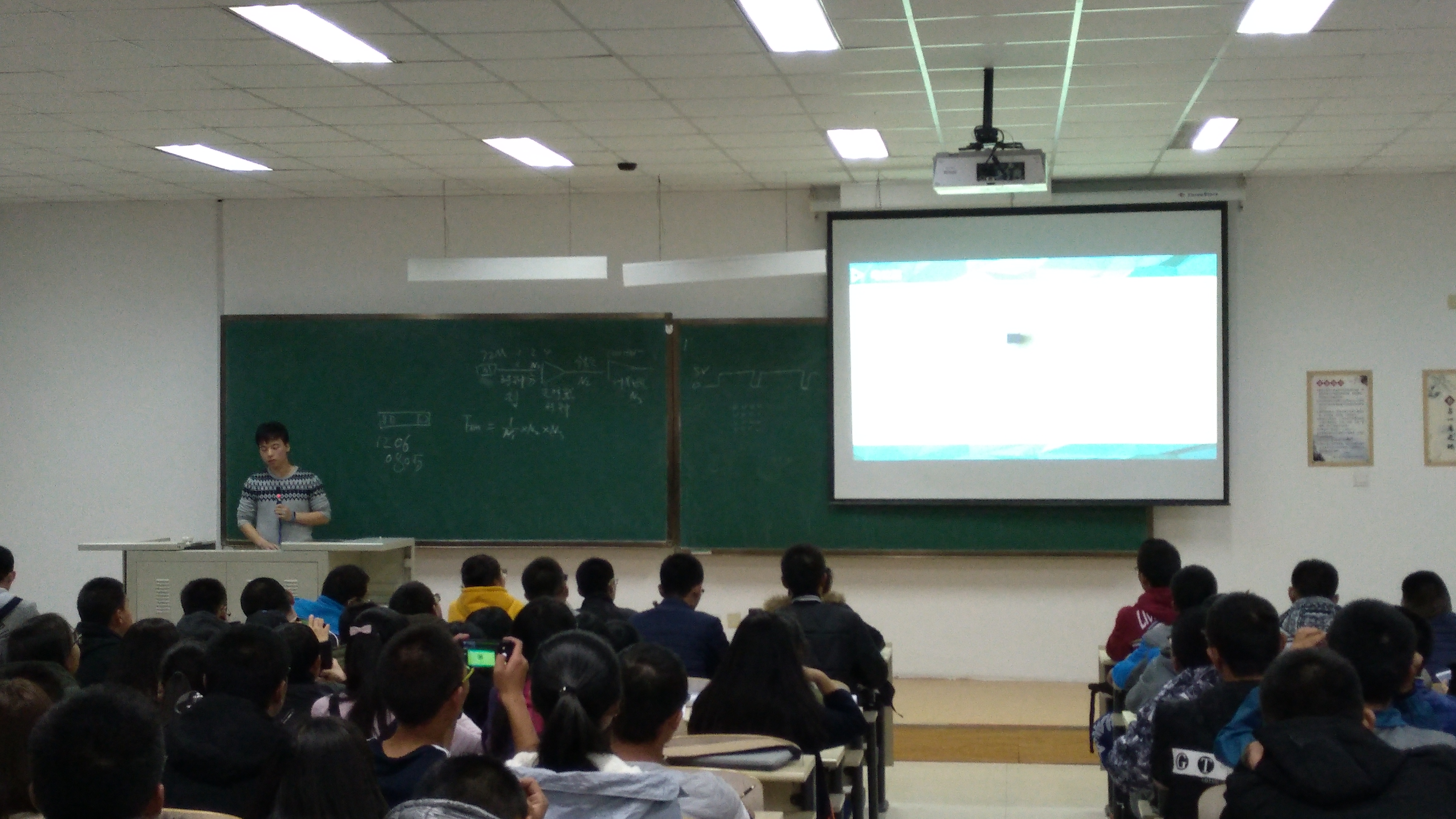 在千承辉老师介绍了培训安排并做了简单动员之后,培训正式开始。首先,龚善超同学对大家进行了基础内容的培训,包括基本元器件及电烙铁的使用方法,让2017级同学们对常用的元器件有了初步的了解,并为实际焊接操作打下了一定的理论基础。在培训过程中,同学们全神贯注,认真地做笔记,体现出2017级新生认真负责的学习态度。培训结束后,2017级同学针对培训中的不懂的地方跟龚善超同学进行面对面的交流,现场同学们热情高涨,讨论异常激烈。随后所有同学到李四光501教室参观2016级同学的机器人比赛,参观过程中,大家不停地喝彩,兴趣盎然,体现了他们旺盛的求知欲。