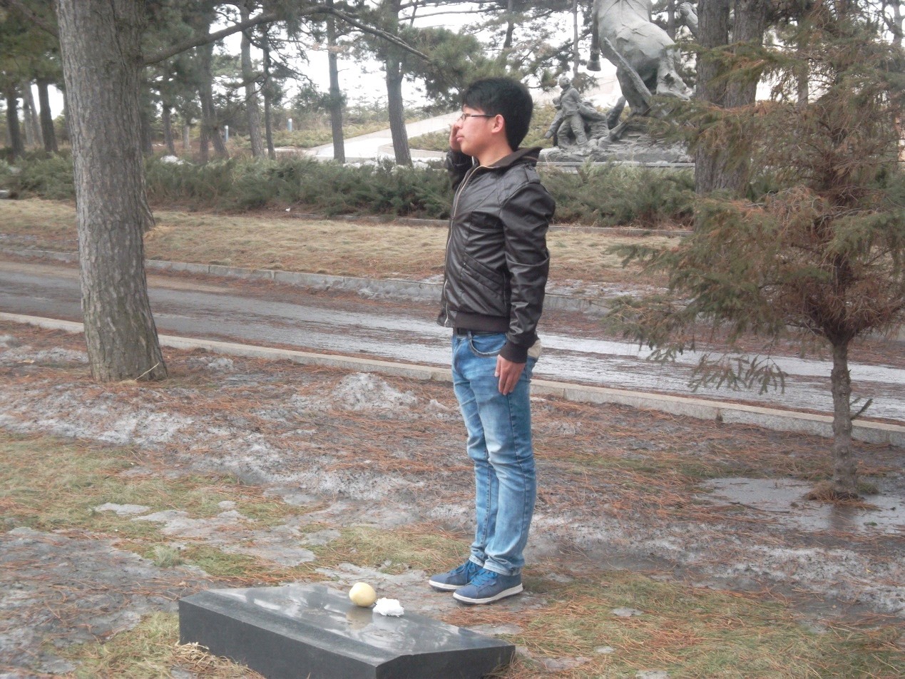 院旗来到长春市九龙源烈士公园。首先,学生代表们向革命英雄敬献承载了崇敬之意的花圈,接着全体同学为烈士默哀三分钟,以表达对先烈的无限哀悼之情。之后,学生代表姜鹏致献悼念词,悲伤及崇敬的声音在纪念碑前久久的回荡,哀痛的言词表达了对英灵已逝的无限伤怀。随后,同学们参观了抗美援朝纪念馆,对烈士的事迹进行了学习和了解。那泛黄的书信、生锈的武器、悲惨的照片无不栩栩如生地显示出当年战争的残酷和革命先烈们为解放而做出的重大牺牲,“誓死不做亡国奴”的铮铮誓言在今天仍激励着中国人民奋勇向前。走出纪念馆,同学们瞻仰了公安英烈广场,向英烈公墓敬礼。最后,全体同学在革命烈士纪念碑前合影,纪念活动顺利结束。