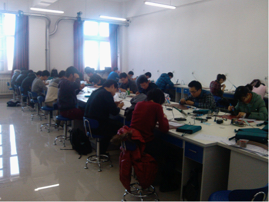 2013年3月8日15:00时,为期6天的培训活动正式开始。活动中,首先由科协副部为学员们发放了相关电子器件,学员们表现出了极大的好奇心,迫不及待地想要亲手进行焊接工作。科协副部张兴宇同学给学员们介绍了器件的名称、用途。接下来,他展示了自己焊接的成品,结合电路图详细地讲解了焊接方法和原理,并且强调了焊接注意事项和安全问题。随后,科协副部黄维宁同学亲手为学员们演示了焊接过程,学员们积极认真地观看学习。此后学员们已经按捺不住跃跃欲试,纷纷投入到焊接工作中。经过了上学期科协的培训,学员们已经基本掌握了焊接方法,所以本次培训学员们快速地进入了状态。科协副部黄婉玉,刘锡洋同学深入到学员们中去,为学员们答疑解难,纠正错误,一对一进行指导。培训活动有条不紊地进行着。很快,有不少同学就已经做出了成品,科协副部李京杰同学为学员们的成品进行检查和测试,由副部张楠同学对焊接速度较快同学的信息进行了整理,并对同学们的作品做出了评价与记录。在副部们的帮助下,每位学员都完成了自己的焊接工作。学员们拿着自己亲手焊接的作品,脸上充满了喜悦与自豪。3月15日17:00时,培训在一片和谐热烈的气氛中圆满落下了帷幕。