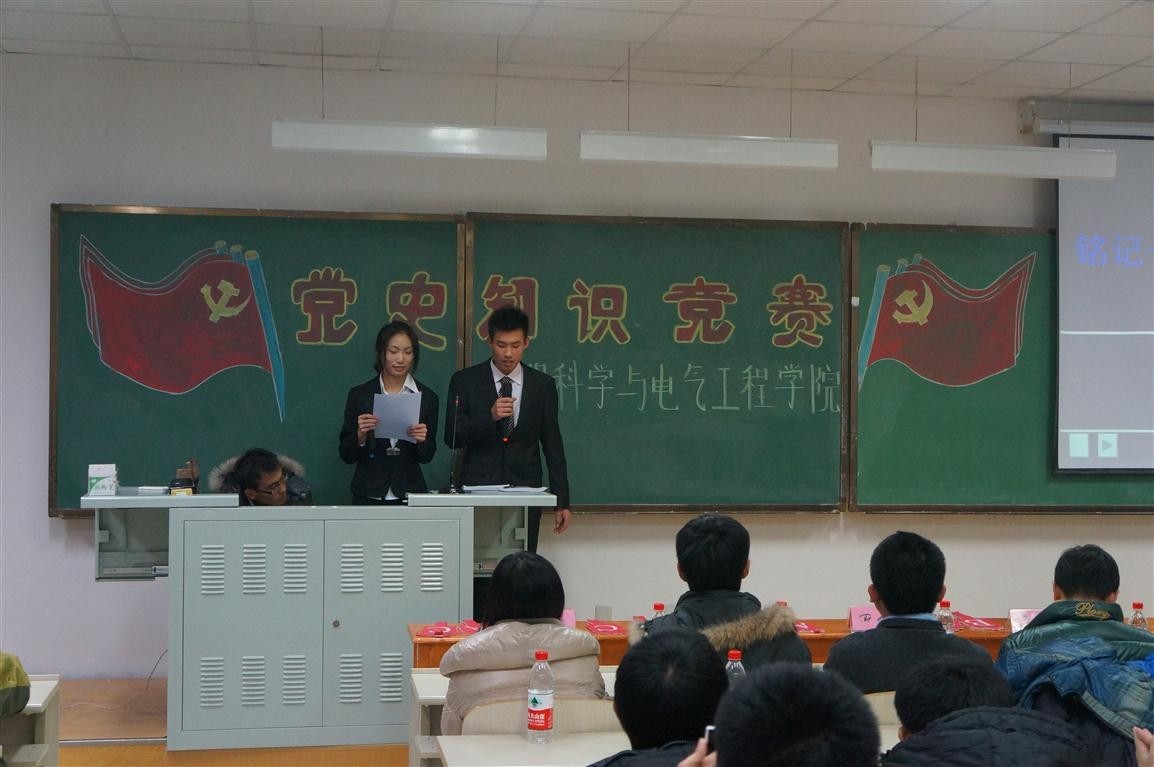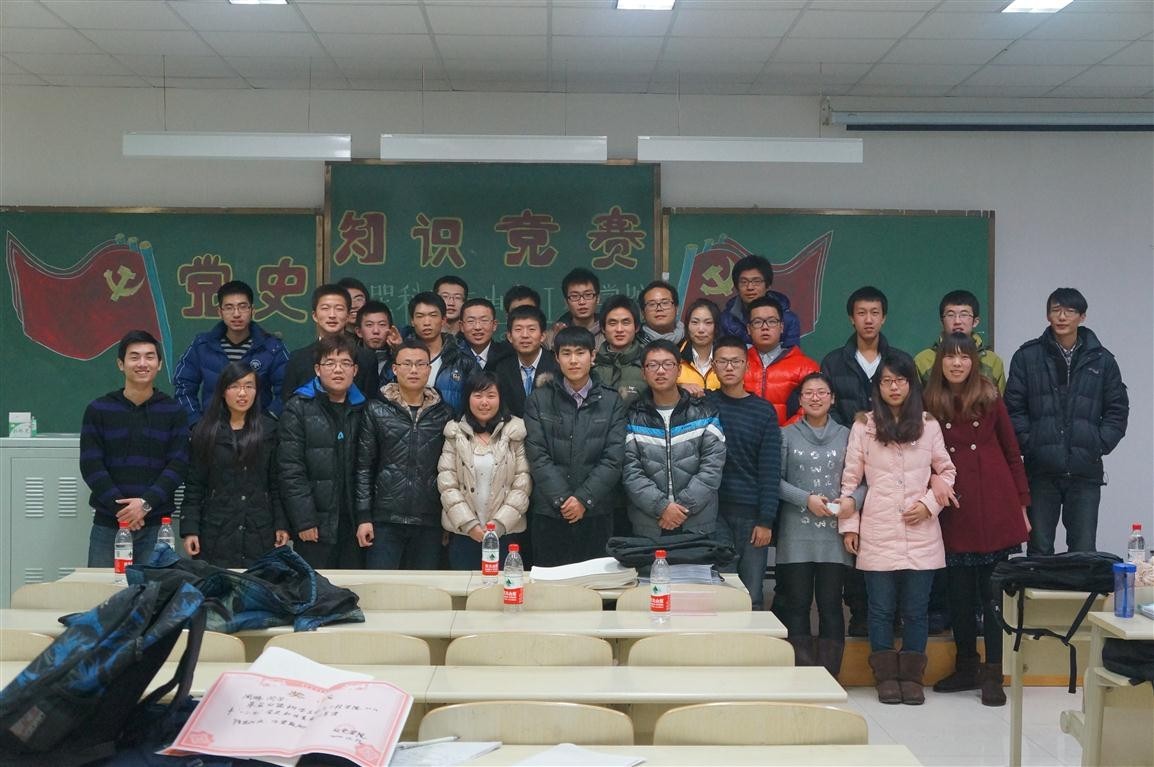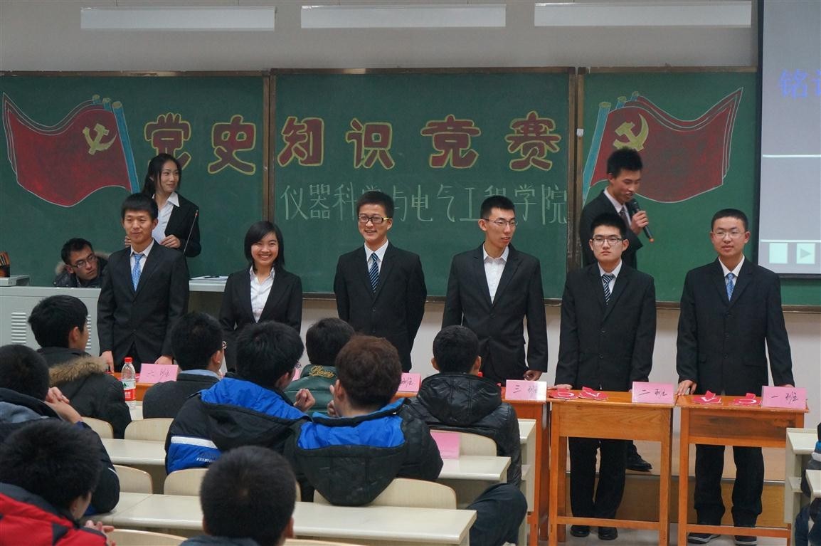 于2012年12月13日18:30在中心校区李四光楼210室隆重举行了党史知识竞赛活动。学院团委副书记兼2011级辅导员朱宇、2012级辅导员蔡印、第八届分团委副书记李娇阳、学生会主席朴冠宇及分团委学生会全体学生干部出席了活动,2012级全体同学参加了活动。