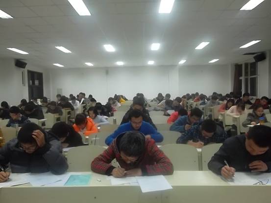 为检验2012级同学们上一阶段的学习成果,发现学习上的问题和漏洞并找到解决方案,为期末考试以及今后的成绩提高奠定基础,2012年11月17日 18:00 时,仪电学院学生会在中心校区李四光楼三楼组织本院2012级全体同学进行了期中考试。分团委学生会主席团成员、学生会各部部长出席活动并担任监考。