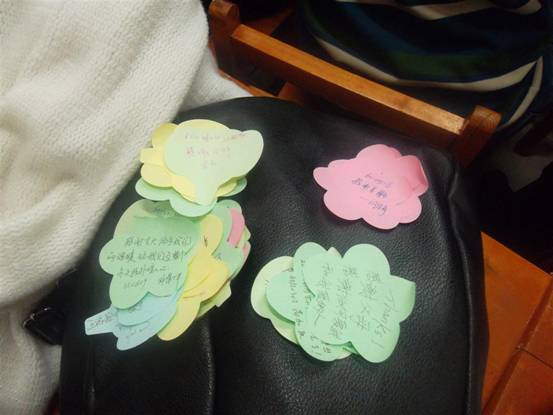 在活动第一环节,同学们通过PPT展示,现场演讲的形式,更多地了解了感恩节的由来及其历史。第二环节,主持人从活动现场随机请一位同学来给大家讲述一件最让他感动的故事,并分享了自己的感恩之情。大家感同身受,被他的故事所感染,所打动。第三环节,在场所有同学都给自己最想感恩的人打电话,道出了那一份问候及祝福,同学都说出了自己的心里话,活动被推向了高潮。第四环节,大家把自己心中感恩话语书写在了那小小的便签纸上并贴附于展板,让这份感恩不断延续,温暖他人。活动的最后,所有同学都在自由交流环节畅言自己的温馨故事,那些未曾道出的感恩。