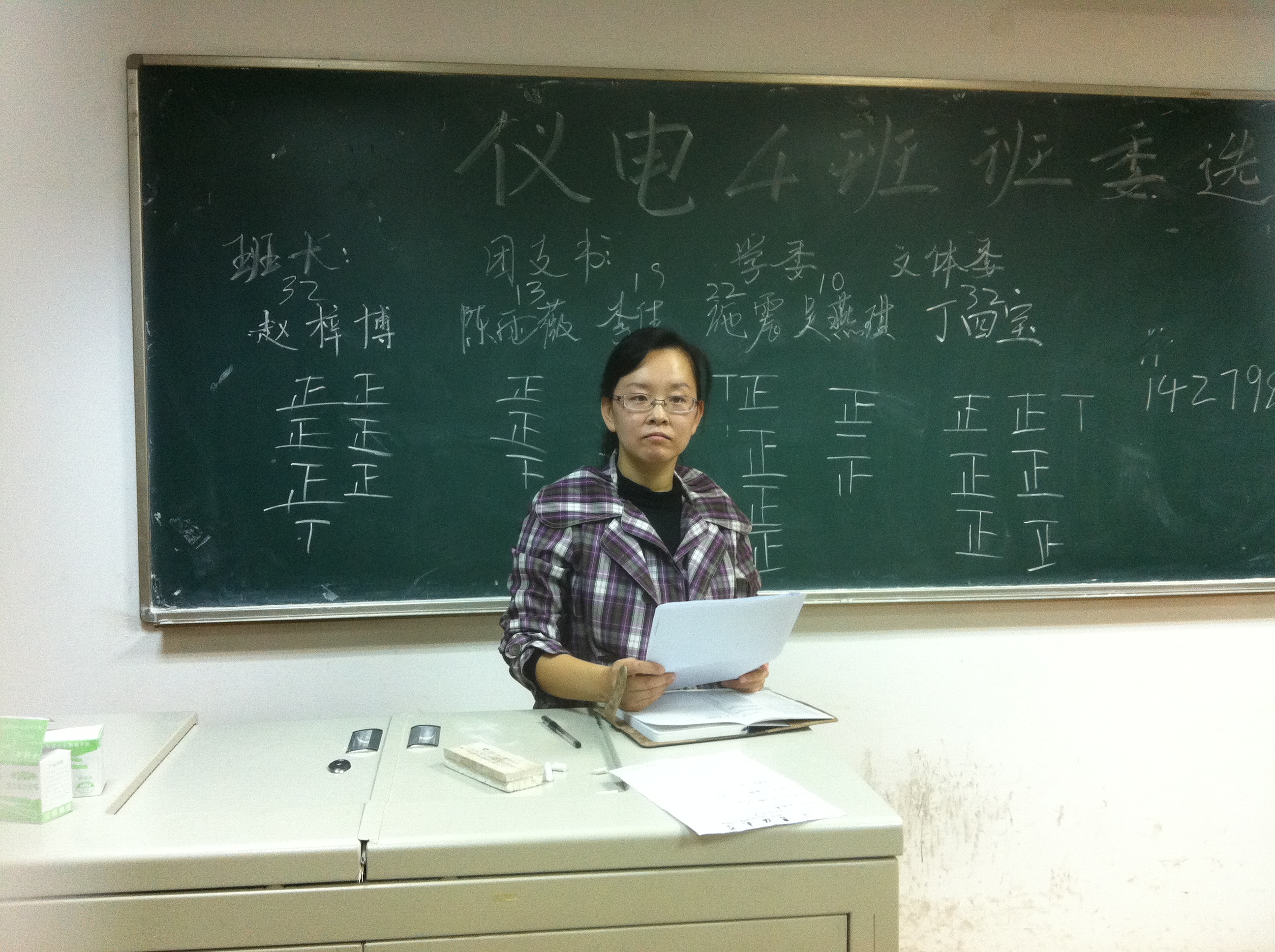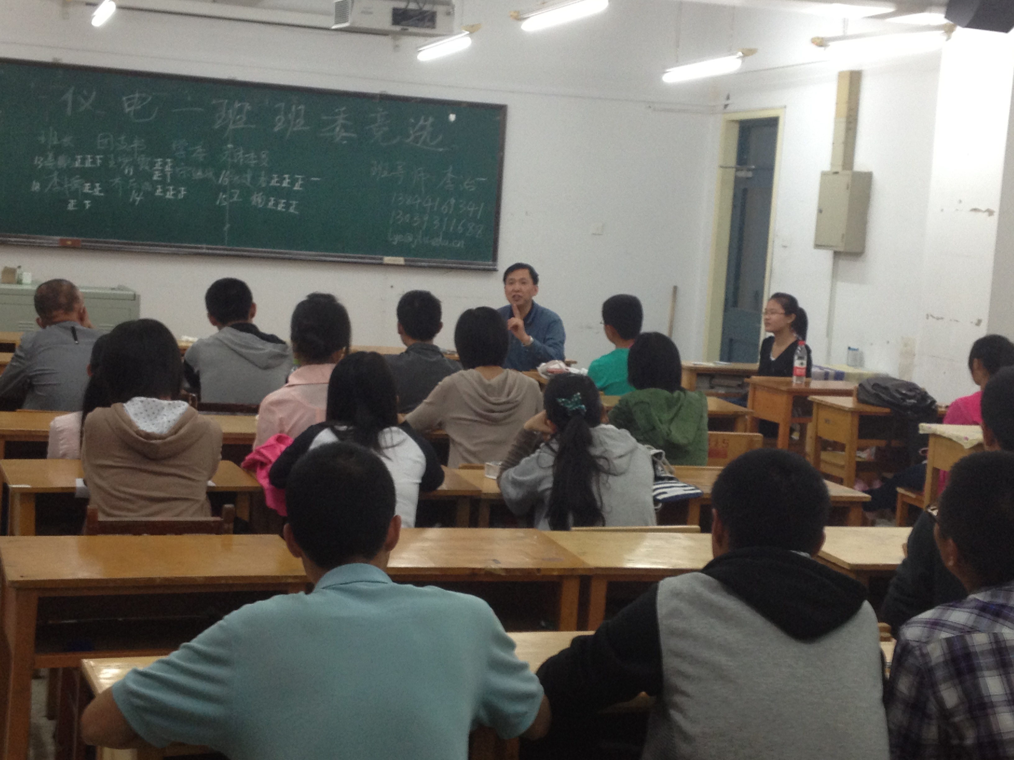 班会共分两个部分:班委竞选演讲;班导师讲话。首先是精彩的竞选演讲。竞选人按照班长、团支书、学习委员、文体委员的顺序依次上台介绍自己的经验、个人能力等,然后陈述自己对于竞选职位的理解以及对班级未来的期望。竞选人都展现了自己不俗的能力以及独特的魅力,都表现出对班集体的热爱,愿意为班集体奉献出自己的力量,并承诺今后将为班级作出自己的贡献。演讲结束后,为确保选举的公平公正,采用无记名投票的方式投票。每位同学都经过了仔细的思考后写下了心目中班委的名字。经过统计,由2010级学长宣布了最后的统计结果。竞选成功的班委同学依次做了诚挚的就职演讲,都对各位同学的支持信任表示感谢,并承诺今后会做得更好。最后,由各班班导师总结了这次班会。并表达了对同学们新学期、新环境中的极大期望,给了同学们极大的鼓励。