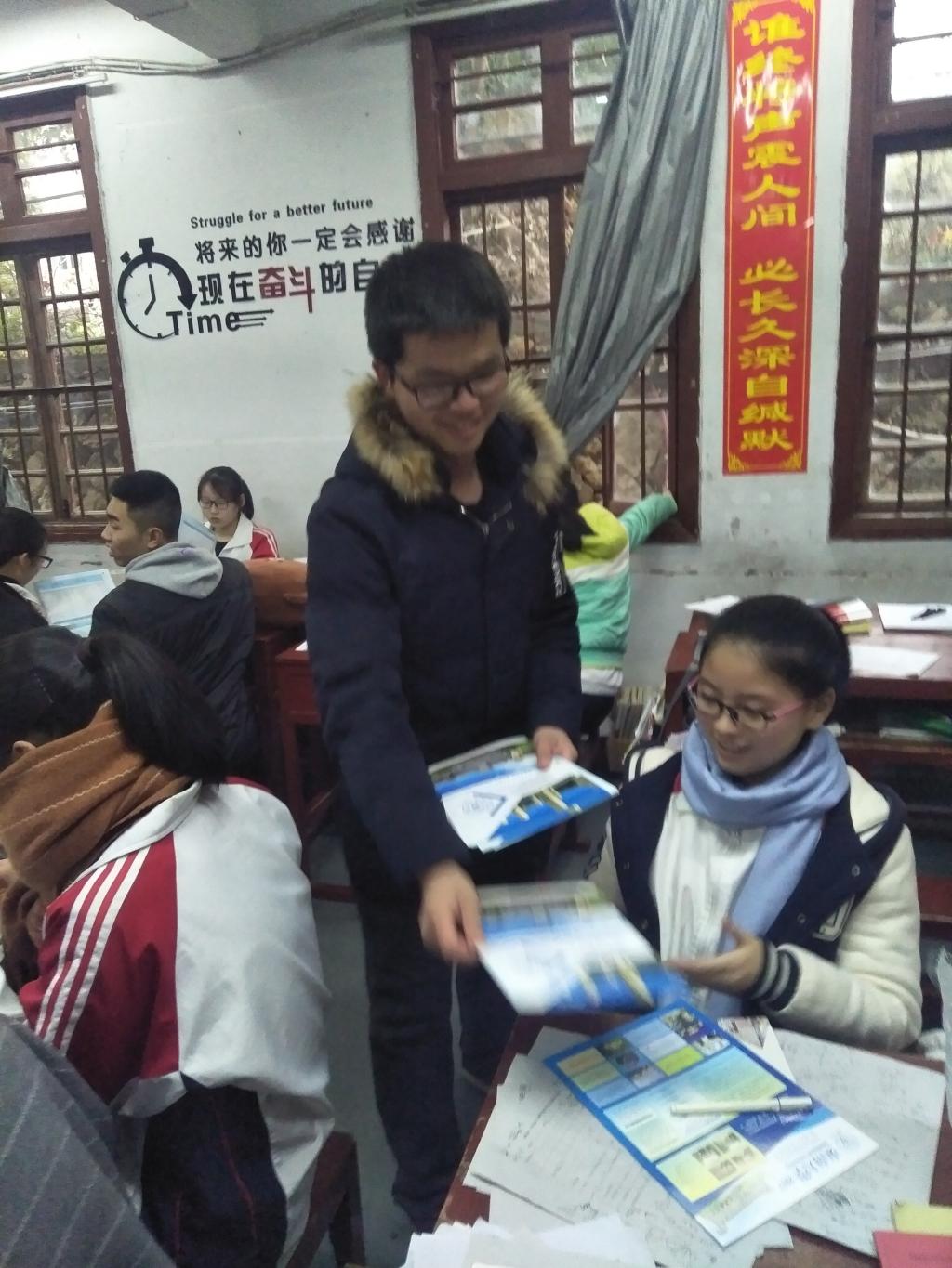 的宣传PPT、简介小册子、宣传片和重点学院的宣传页,以备宣传之用。宣讲活动对象主要为高三年级同学,陈丽琪同学负责录像、徐明辉同学负责拍照,其他同学负责分发印有 onlytik