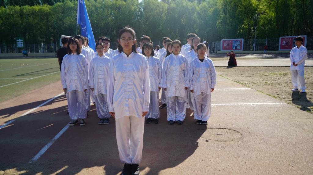 的太极方队踏着整齐的步伐进入场地,参赛由一名领队、一名旗手和30人方队组成,另外还有四名替补队员。比赛中每一个人的努力都值得被肯定。在轻松而舒缓的音乐中,同学们柔中带刚,动作娴熟到位,张弛有度,充盈着太极之美。即使天气炎热,同学们为学院增光添彩的热情也无法被阻挡,身着白色太极服的他们在赛场上格外出彩。