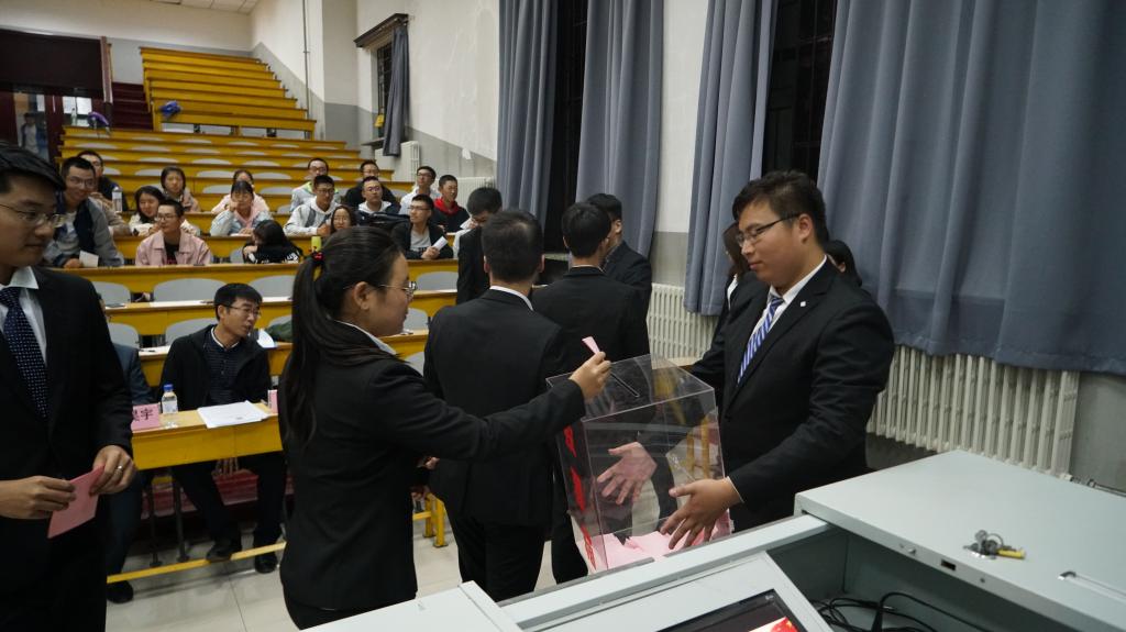 大会在轩昂壮阔的中国共产主义青年团团歌声中拉开序幕。此次大会首先审议并通过了第十三届学生会主席马松辰同学代表团学组织进行的工作报告,回顾了一年来第十三届团学组织的工作历程。随后,院党委副书记兼副院长周伟老师为第十三届团学组织主要学生干部颁发了聘书。聘书颁发仪式结束后,学院第十三届分团委副书记仲点石同学宣读了第十四届团学组织主要学生干部候选人名单,随后候选人依次上台演讲竞职。候选人们结合演示文稿陈述了自己的竞选理由和个人优势、组织和岗位认识以及任职后的工作构想,精炼而自信的演讲赢得了与会人员的阵阵掌声与赞叹。演讲完毕后各学生代表依次上台公开投票,民主选举产生新一届主要学生干部。最终,2016级高金潇同学当选第十四届分团委副书记,高兴同学当选分团委副书记兼新闻媒体社社长,陈亦楠同学当选学生会主席,孙月同学当选学生会副主席,周帅宇同学当选社团联合会主席。大会还选举产生了第十四届团学组织各部门负责人。随后,2017级于淇同学宣读了倡议书,倡议团学组织的学生干部们认真工作,兢兢业业为同学们服务,为 onlytik