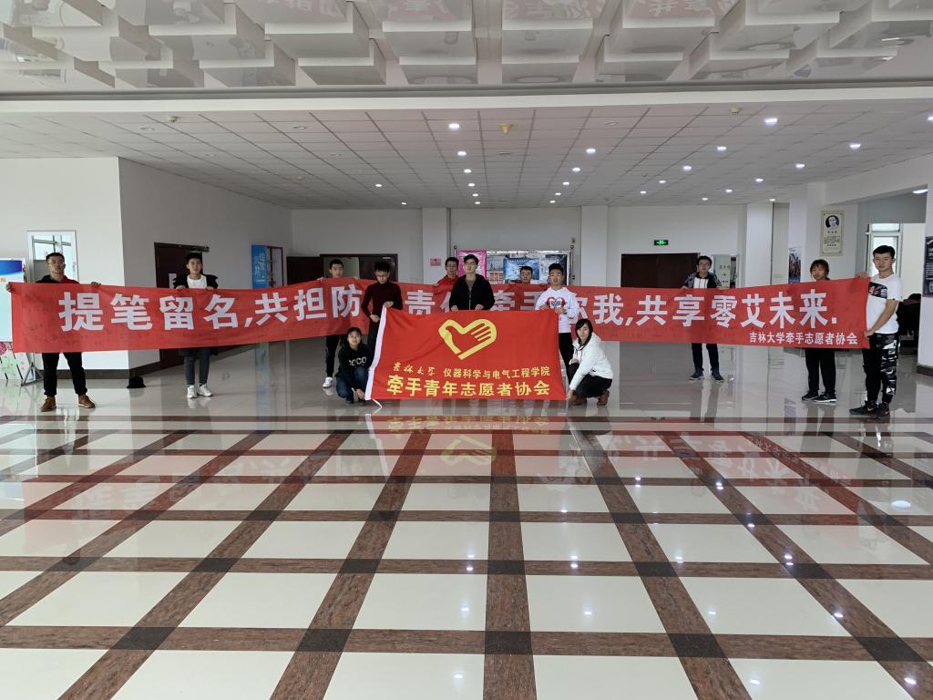 牵手志愿者协会于2018年12月2日在经信教学楼及李四光教学楼开展了以“主动检测 知艾防艾 共享健康”为主题的“世界艾滋病日”宣传活动。活动内容主要有“艾滋病防治知识宣传”、“艾滋病相关问题问答”和“践行防艾承诺大签名”三部分。