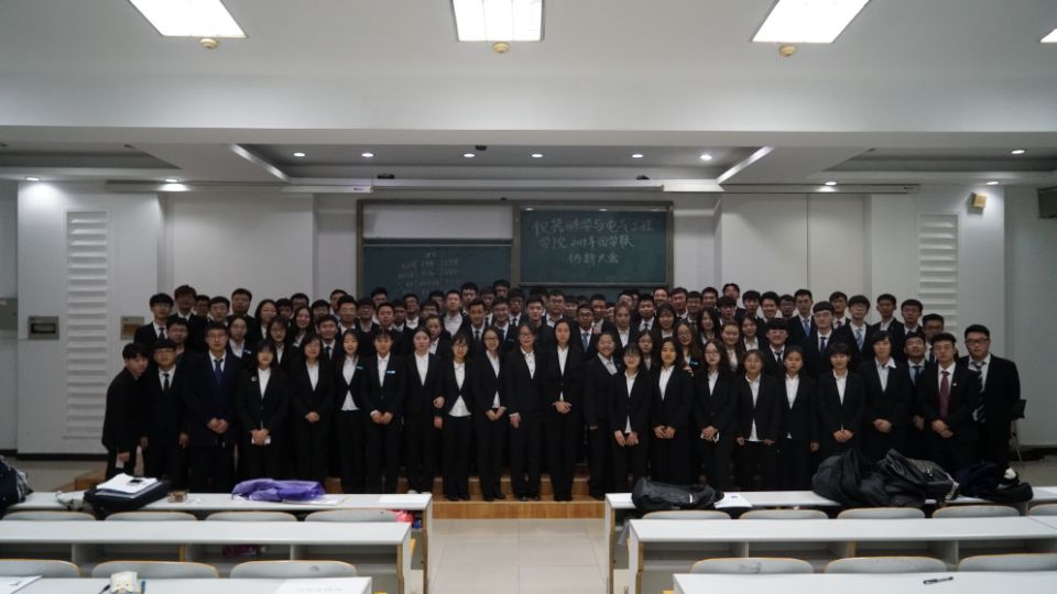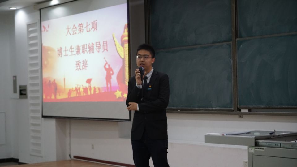 在全体齐唱团歌之后,学生会主席陈亦楠同学对过去一年团学联组织的工作进行总结汇报。之后大会对2018-2019学年寒假社会实践优秀志愿者进行表彰,接下来各部门依次展示部门情况,以幽默风趣的语言带动气氛,鼓励大家积极报名,现场气氛活跃。随后学生会主席陈亦楠同学发言,在发言中他表达了对2018级新生寄予的厚望。最后博士生兼职辅导员周琪发言致辞,对本次大会提出了表扬以及肯定,鼓励大家再接再厉,共创佳绩。之后全体成员奏唱校歌。纳新大会秉承“公开、公平、公正”和“择优录用”的原则,对每位报名的同学都进行了细致的考核,同学们回答积极,思维活跃,纳新活动认真、高效地进行,选拔过程井然有序。2018级同学积极参与,纳新现场十分火爆,参加面试的同学准备充分,对答如流,大方得体,纳新大会取得成功。