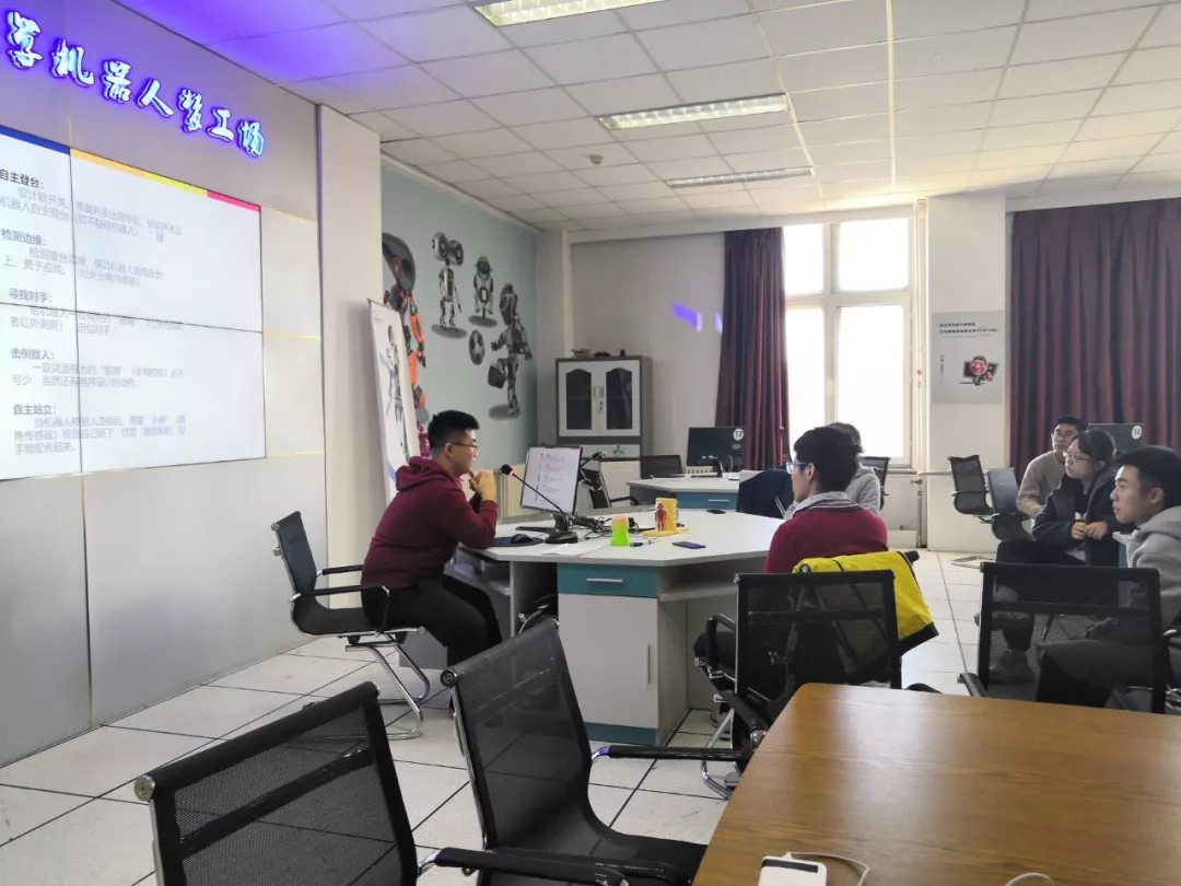 大学生科技创新协会在李四光楼501机器人梦工场举办了博创机器人培训活动。本次活动由滕泽远、惠乾鑫、王喆三位同学主讲。